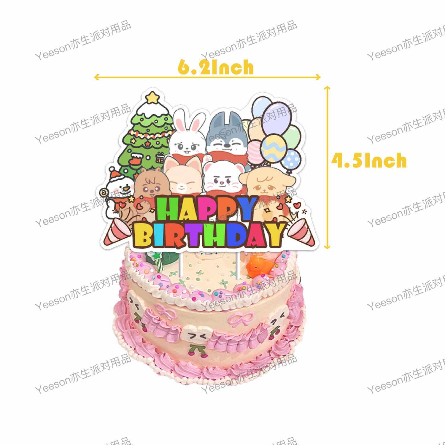 📚 跨境straykids Skzoo周边生日主题蛋糕装饰背景墙布置卡通公仔男