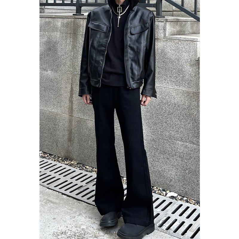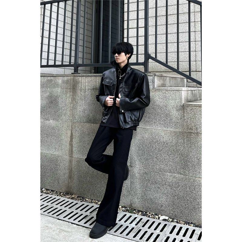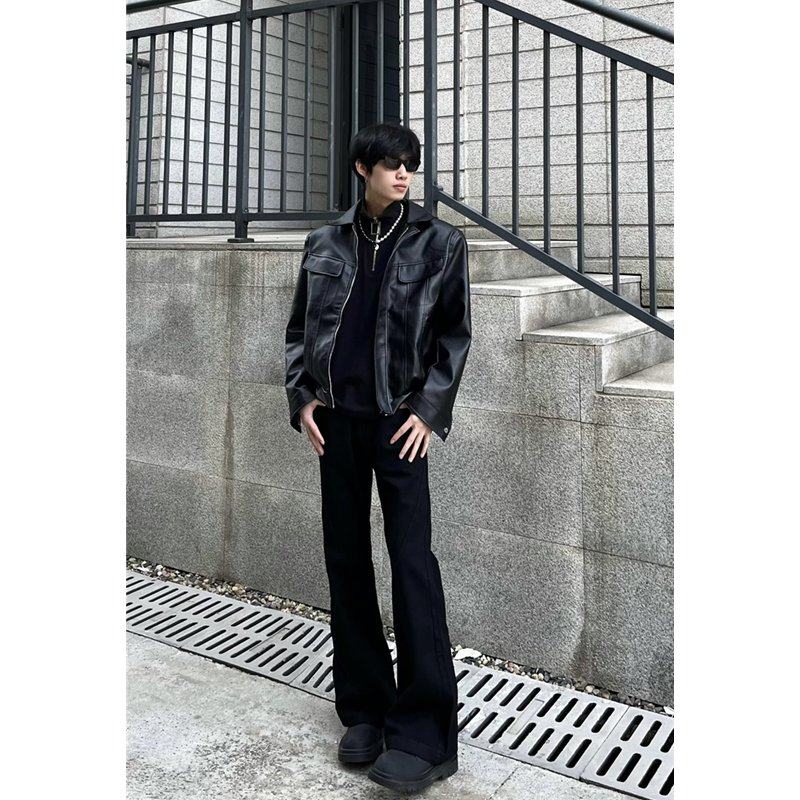 📚 男模穿搭套装高级感痞帅短款垫肩PU皮衣外套搭配三件套夹克西裤子