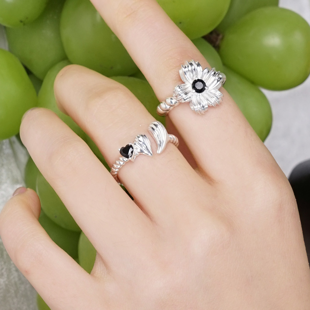 📚 Mell黑莓奶油麻花开口戒指 925纯银心心花朵复古原创设计师小众