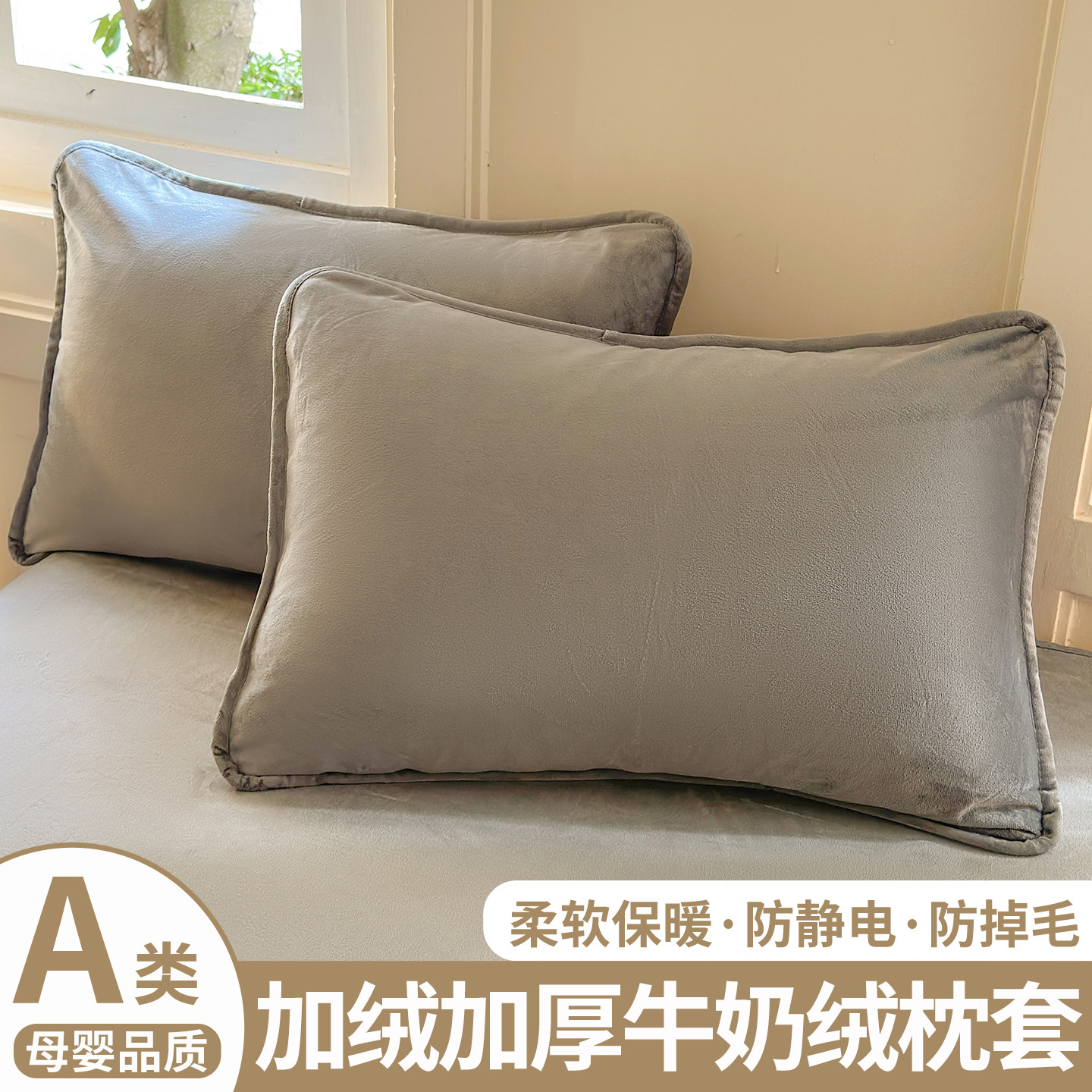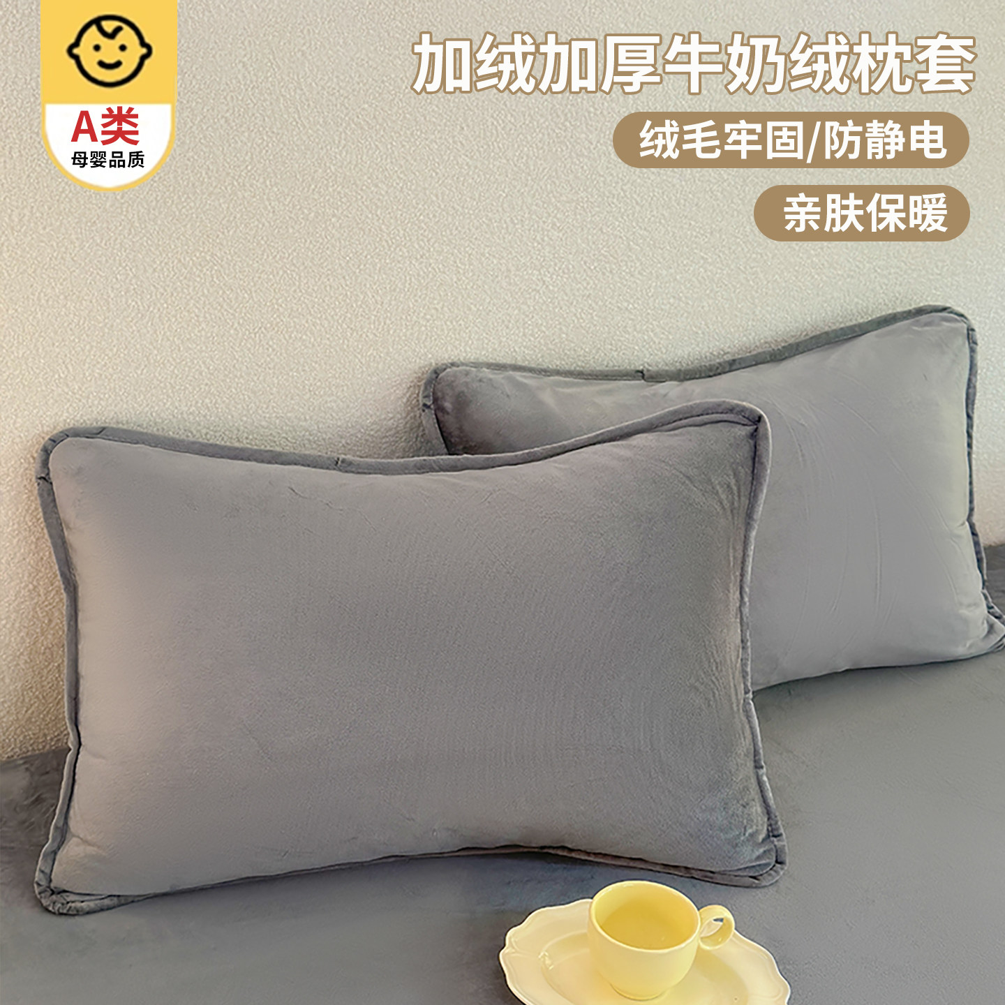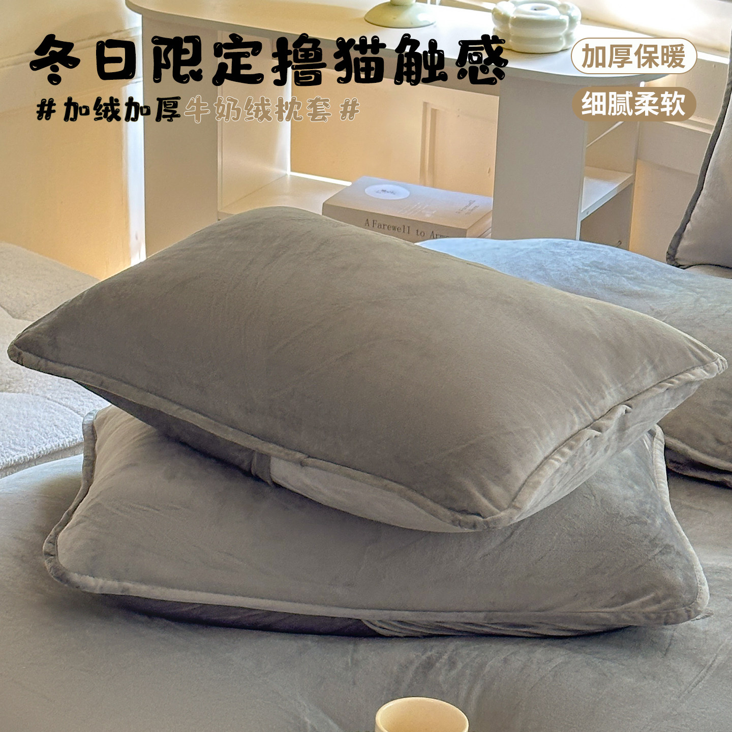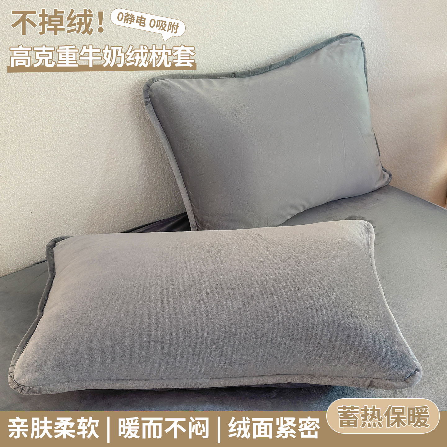 📚 暖肤更暖梦乡~牛奶绒枕套一对装珊瑚绒枕头套毛绒加绒法兰绒套装