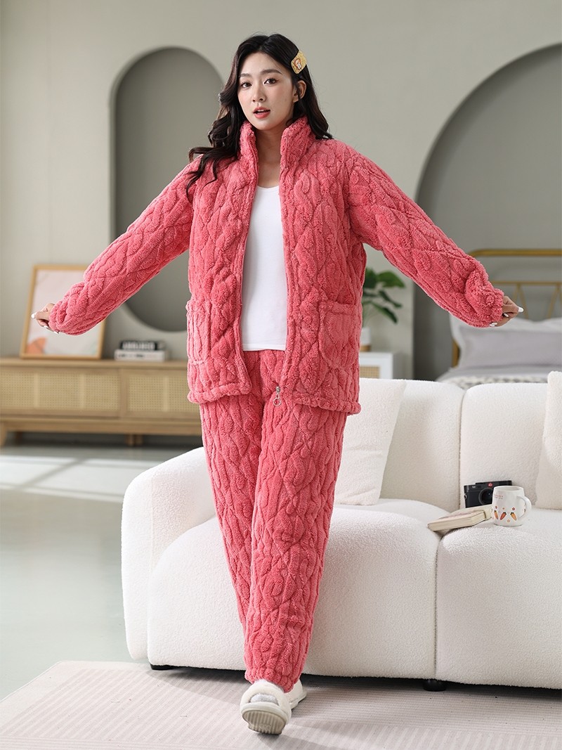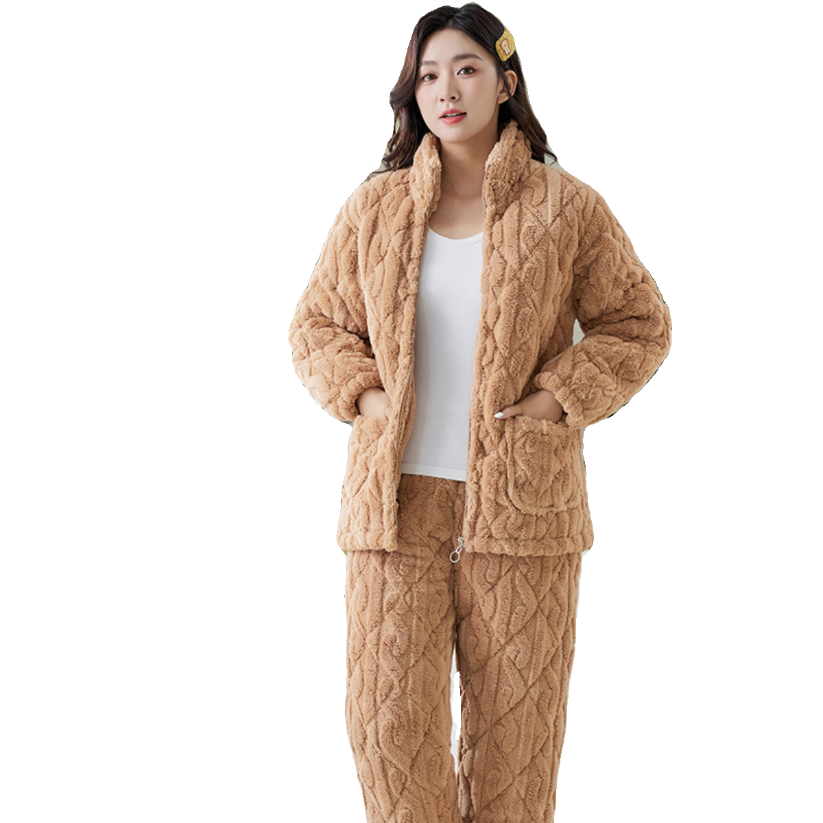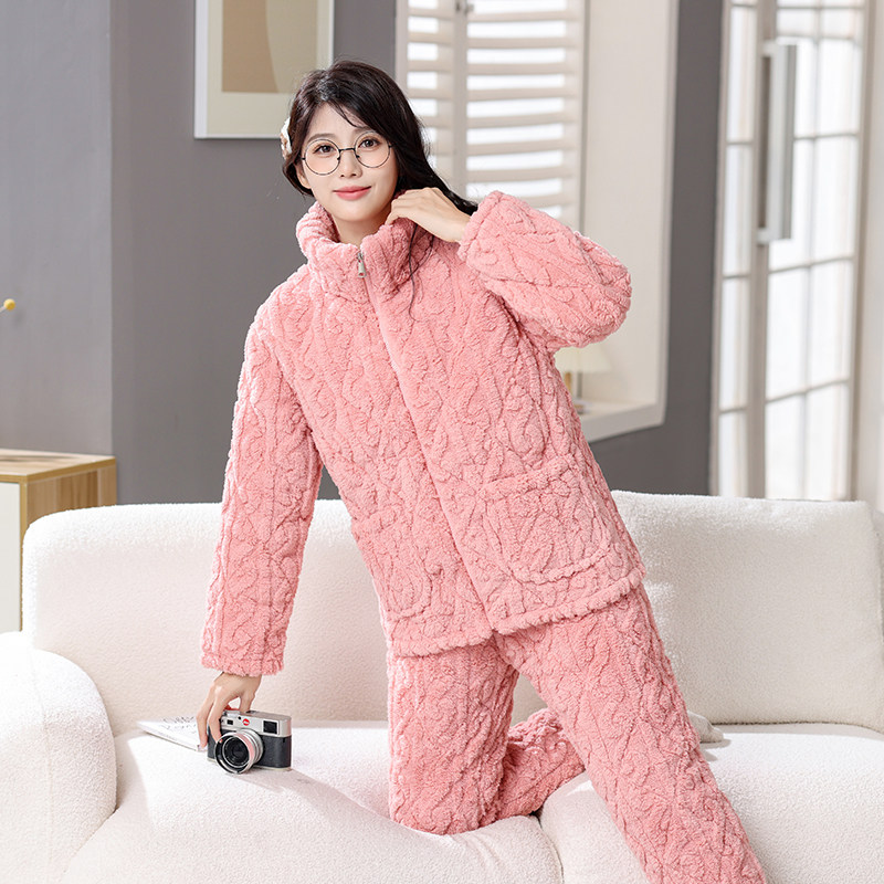 📚 冬季睡衣女三层夹棉加绒加厚法兰绒拉链新款可外穿瘦身家居服套装