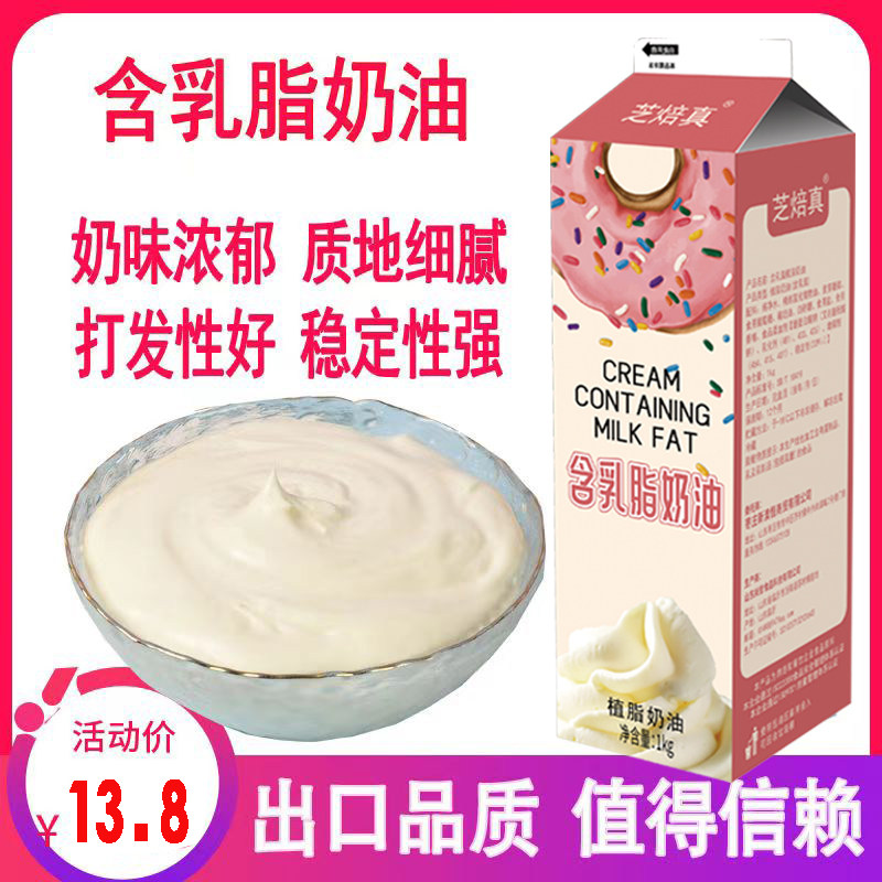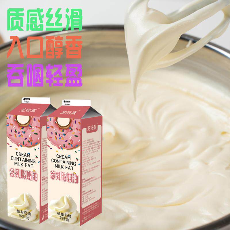 📚 芝焙真含乳植脂植物性淡奶油家用练手泡芙蛋糕裱花烘焙专用原料1L