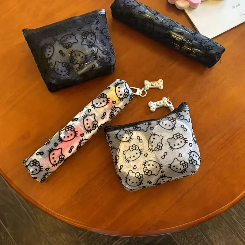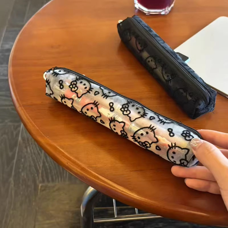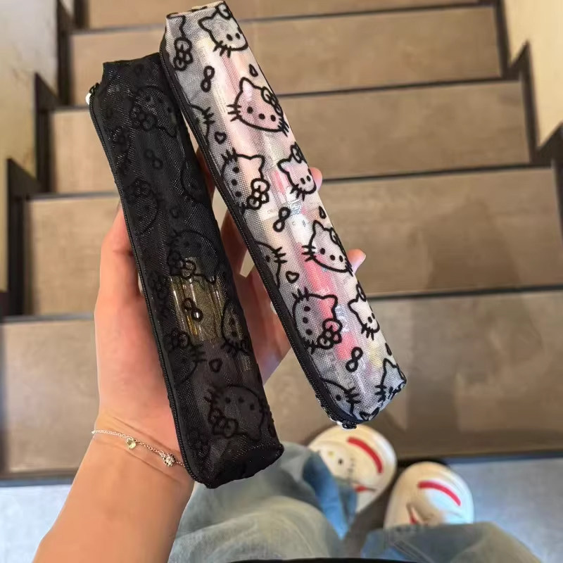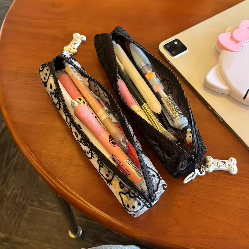 📚 可爱网纱kt猫笔袋女学生大容量文具收纳袋便携式铅笔盒化妆刷包