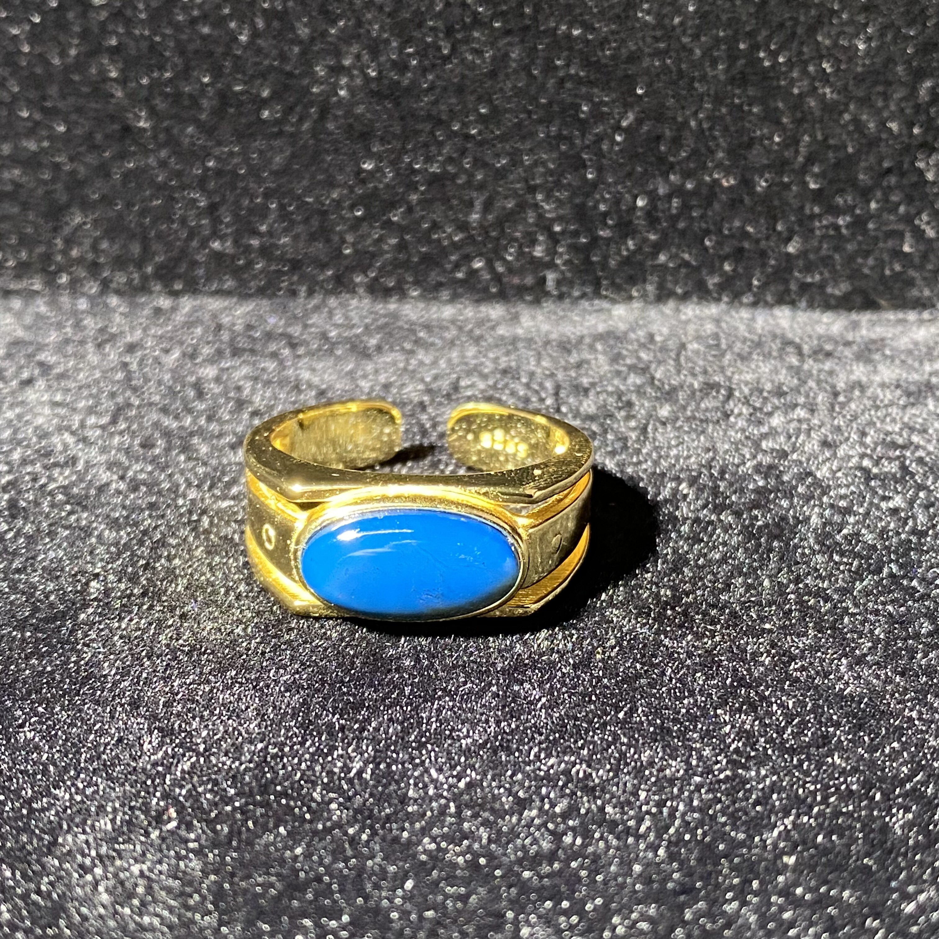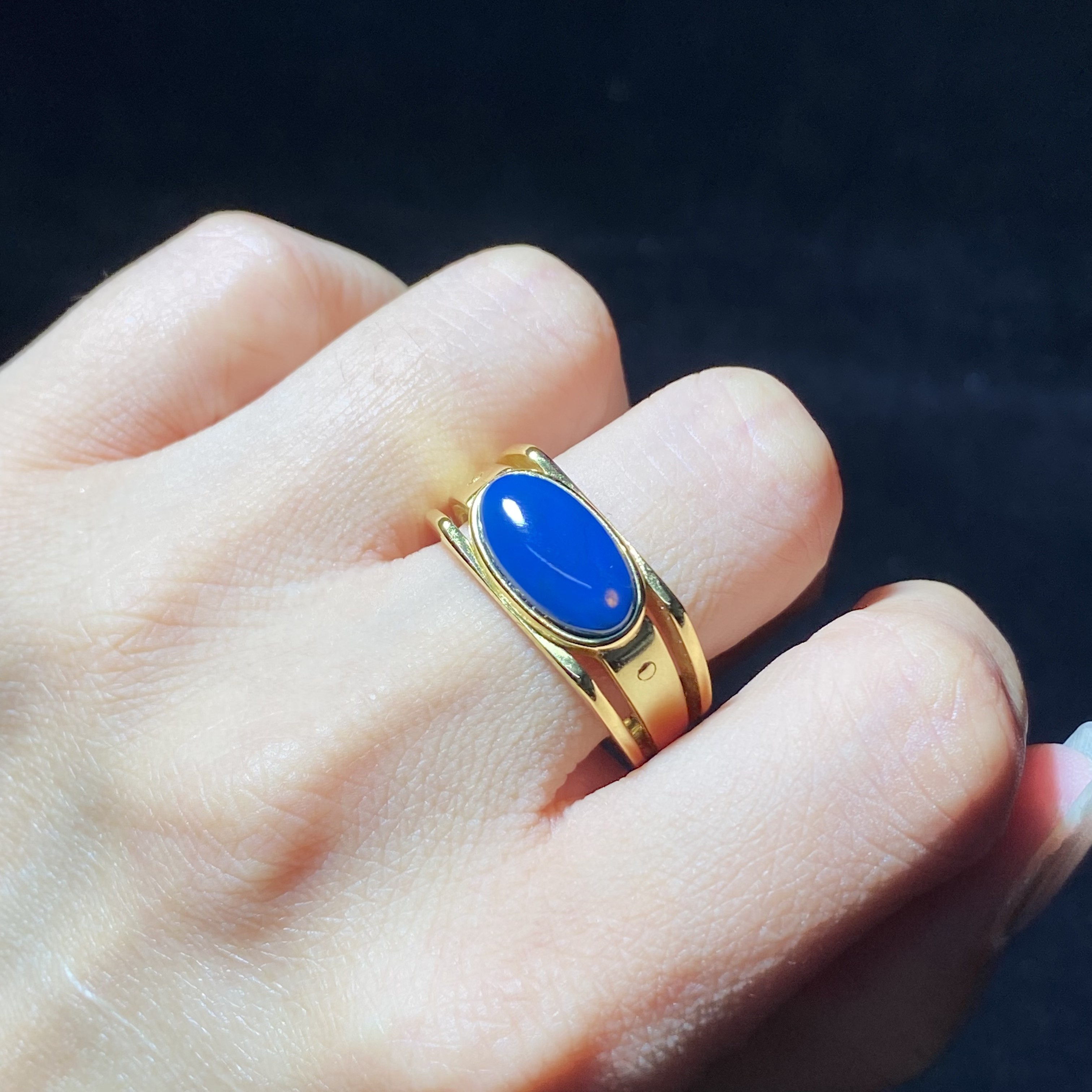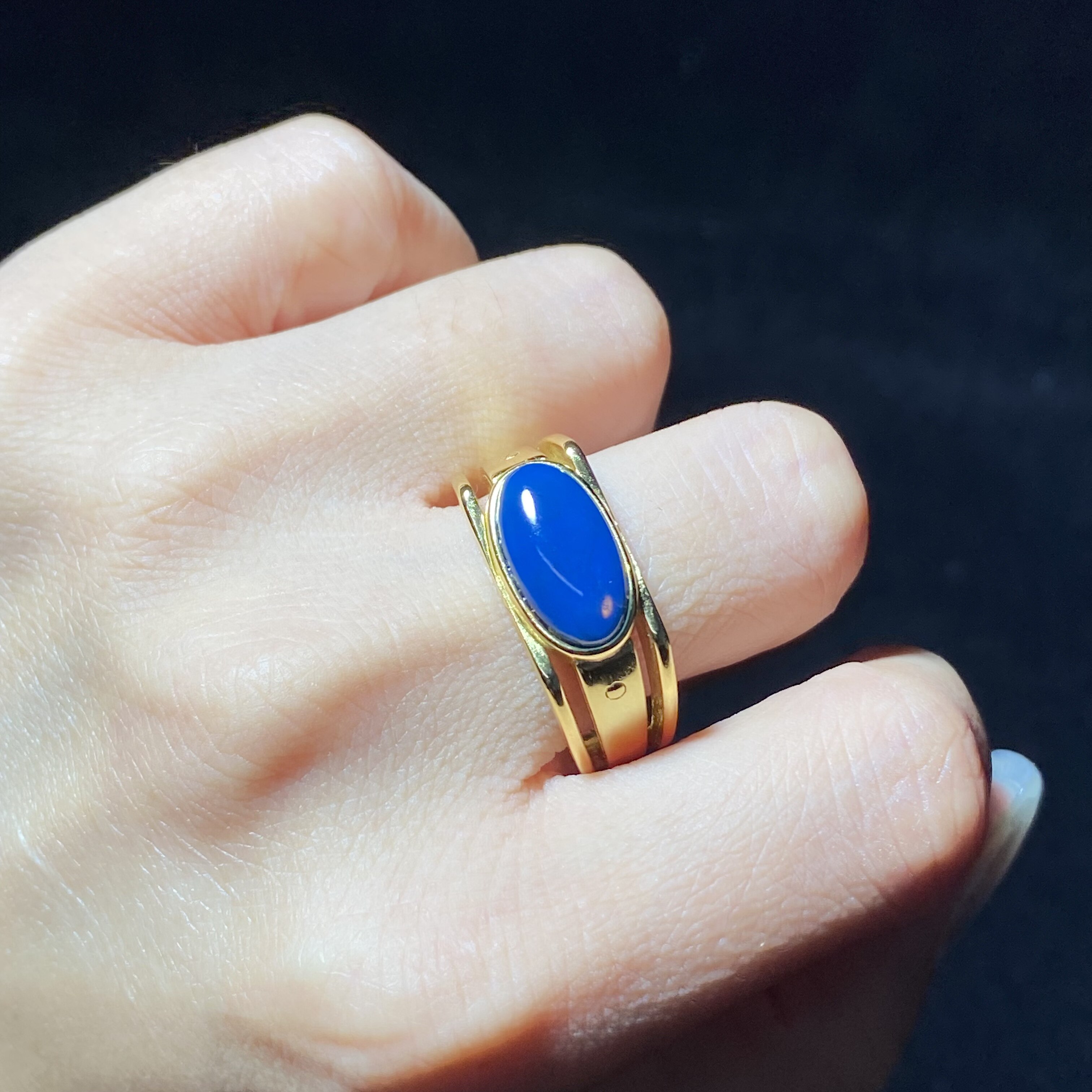 📚 天然多米尼加蓝珀戒指5A净水皇家蓝男士戒指女戒开口戒