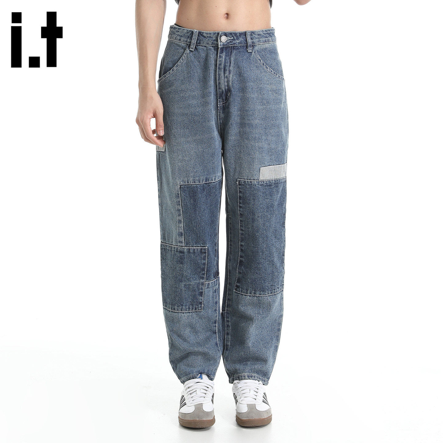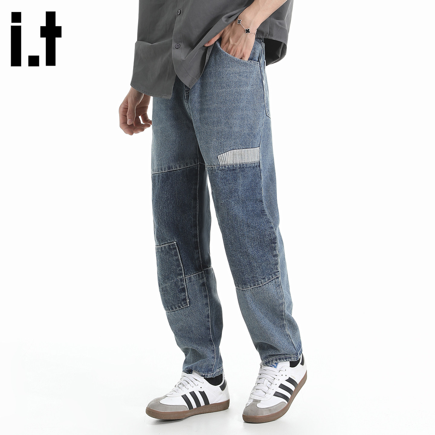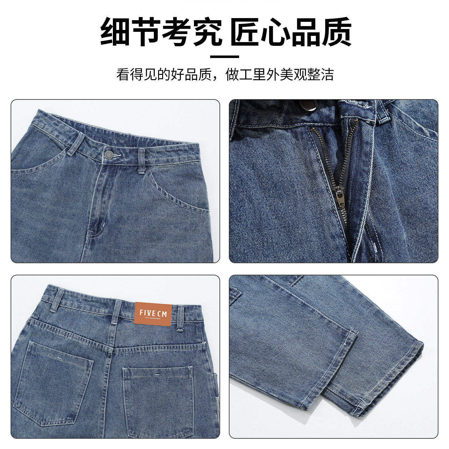 📚 it :5cm/FIVECM乞丐风拼接撞色牛仔裤男女新款潮流2025夏宽松裤子