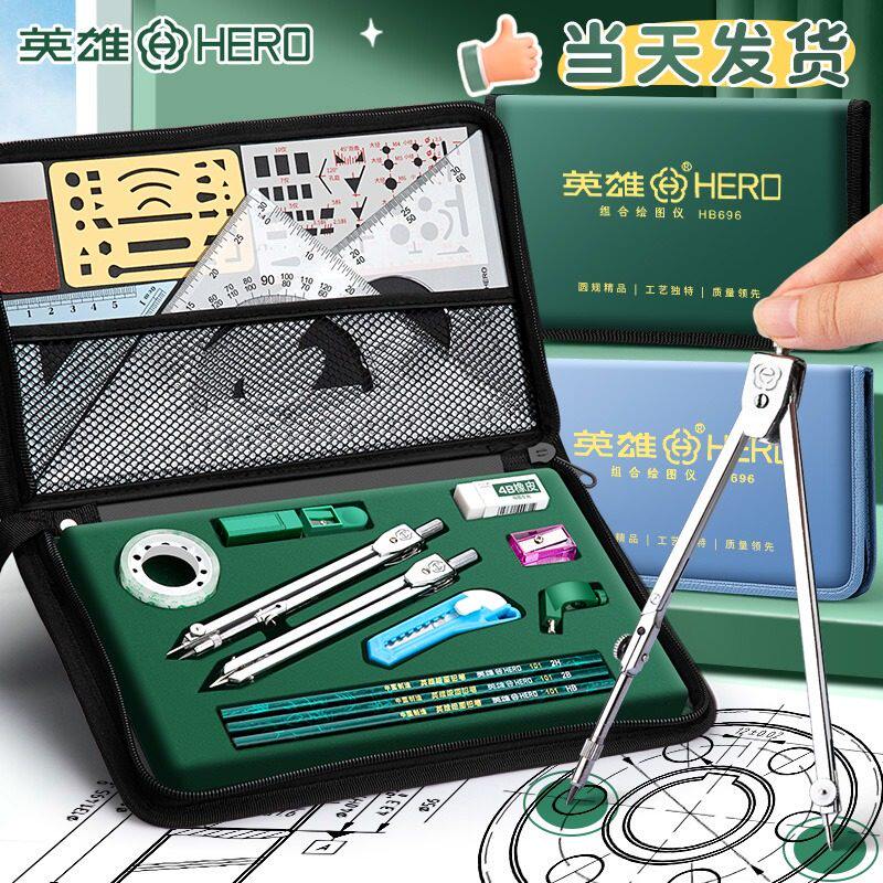 📚 英雄机械制图工具土木工程制图绘图工具包绘图建筑工图做图作图画图专业圆规套装丁字尺组合大学生实用尺规