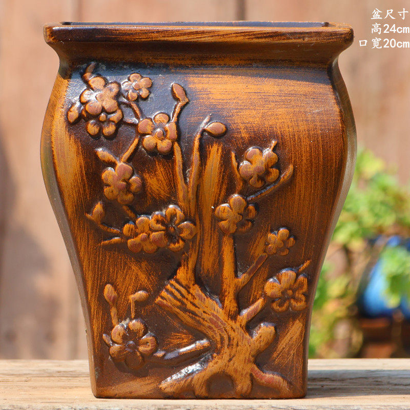 📚 手工透气紫砂粗陶方盆带脚多肉花盆陶罐陶瓷大号方口盆植物兰花盆