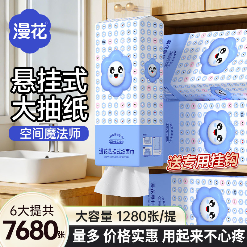 📚 漫花悬挂式抽纸家用实惠装整箱卫生纸巾大包面巾餐巾纸抽厕纸擦手