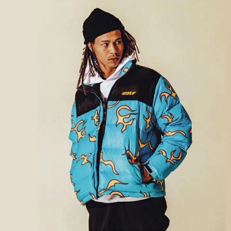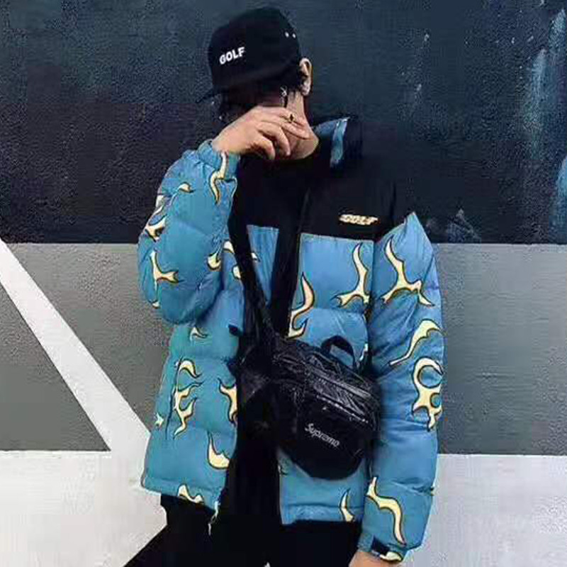📚 正确版本 GOLF WANG蓝色火焰羽绒棉服男女冬棉衣ins情侣外套加厚