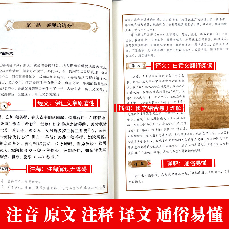 📚 【加厚完整版】金刚经正版全集原著原文+注释注解+译文插图版国学经典中国古典名著百部藏书金刚经佛经易经心经金刚般若波罗蜜经书