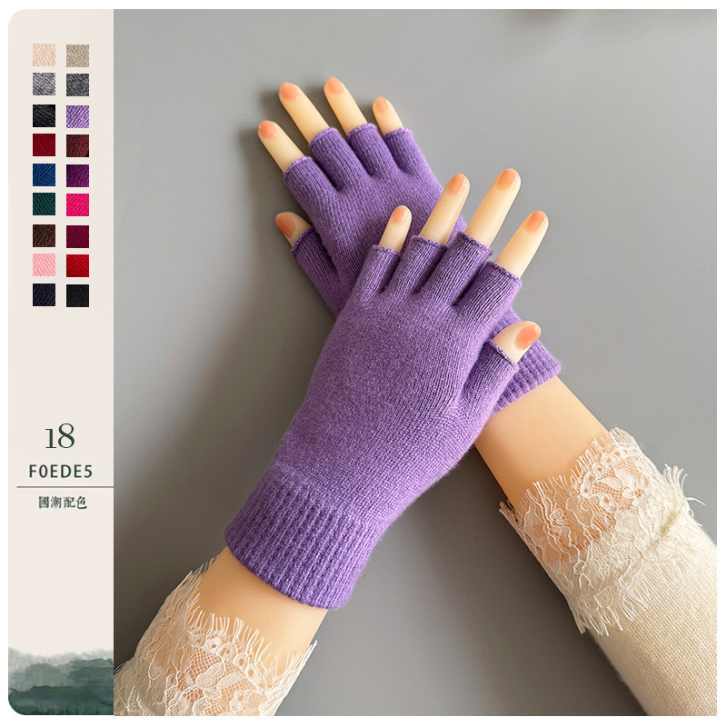 📚 羊毛半指手套男女士保暖针织毛线写字防寒学生分指韩版可爱露五指