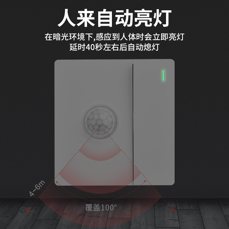 📚 86型一开双控加人体感应开关带光控红外线感应加开关智能延时面板