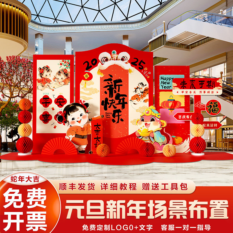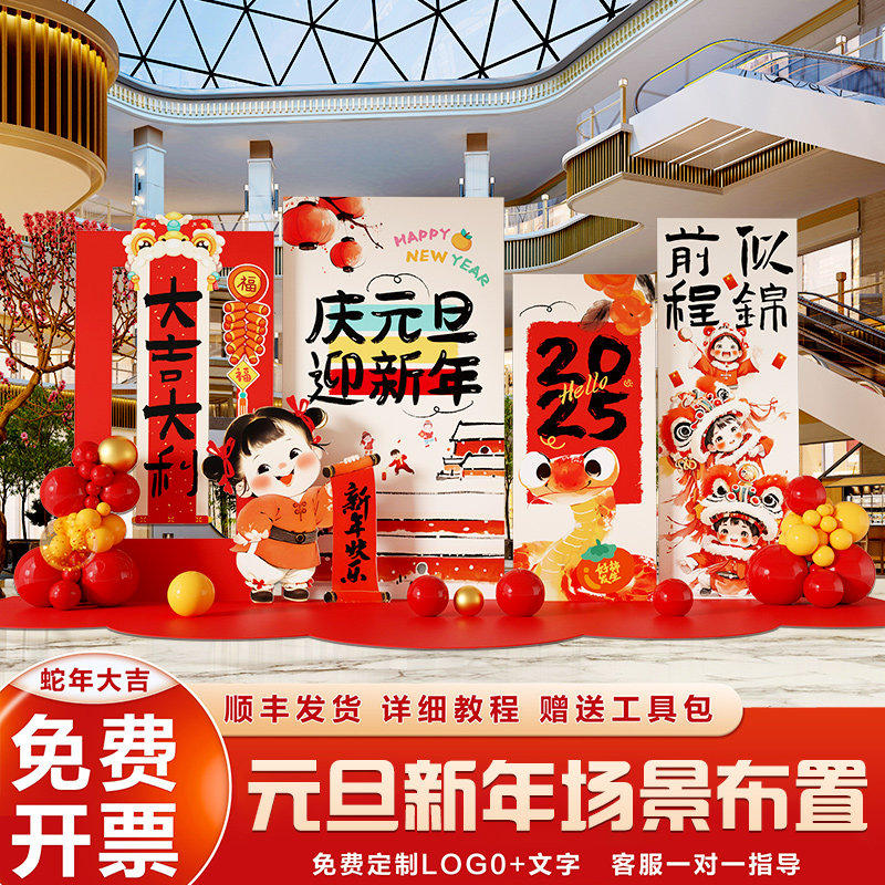 📚 幼儿园元旦氛围布置马年晚会气球新年教室班级装饰场景kt板背景墙