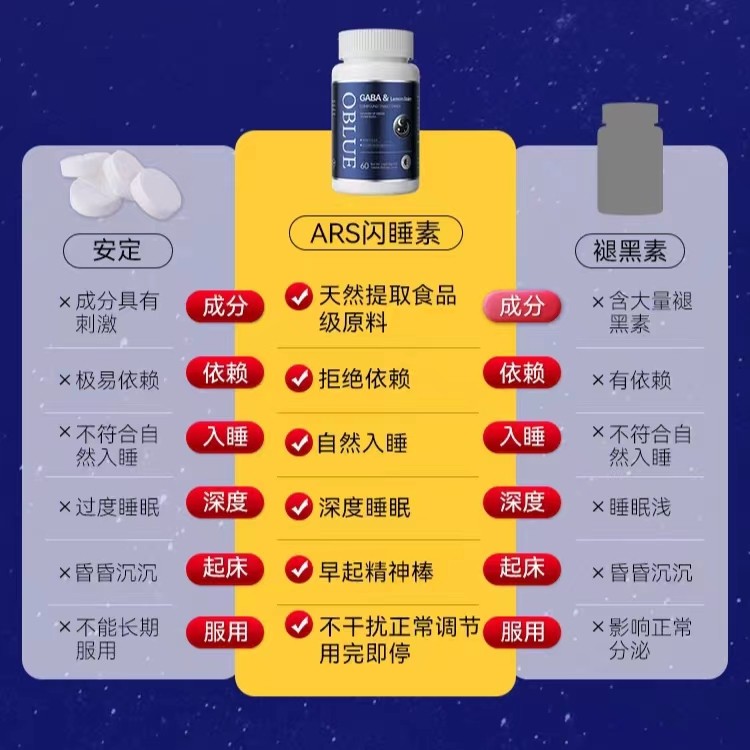 📚 美国原装进口OBLUE欧林兰助眠片酣睡一整晚ASR闪睡素非褪黑素GABA