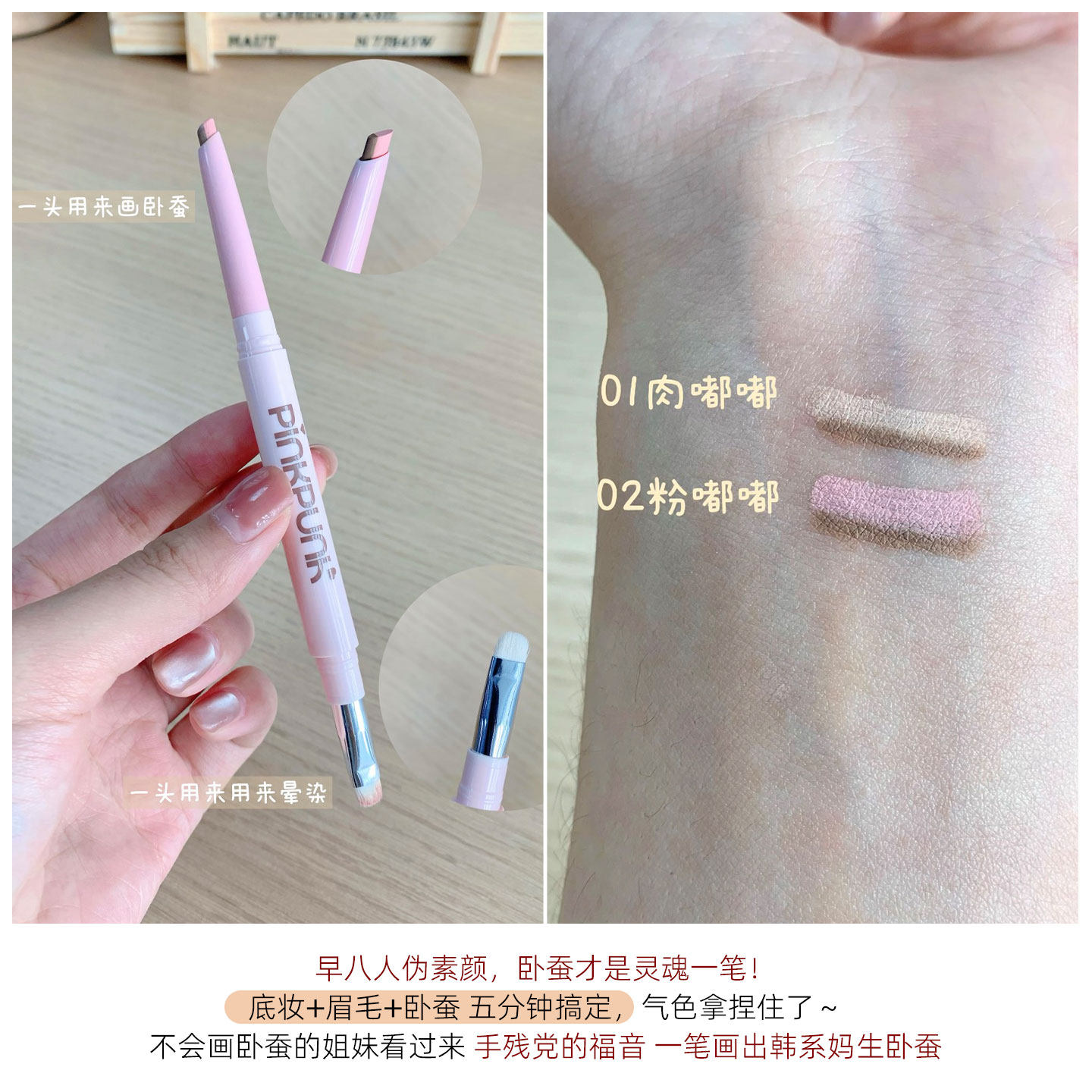 📚 桃又野双拼卧蚕笔双头阴影勾勒高光提亮笔下至纯欲妈生感伪素颜女