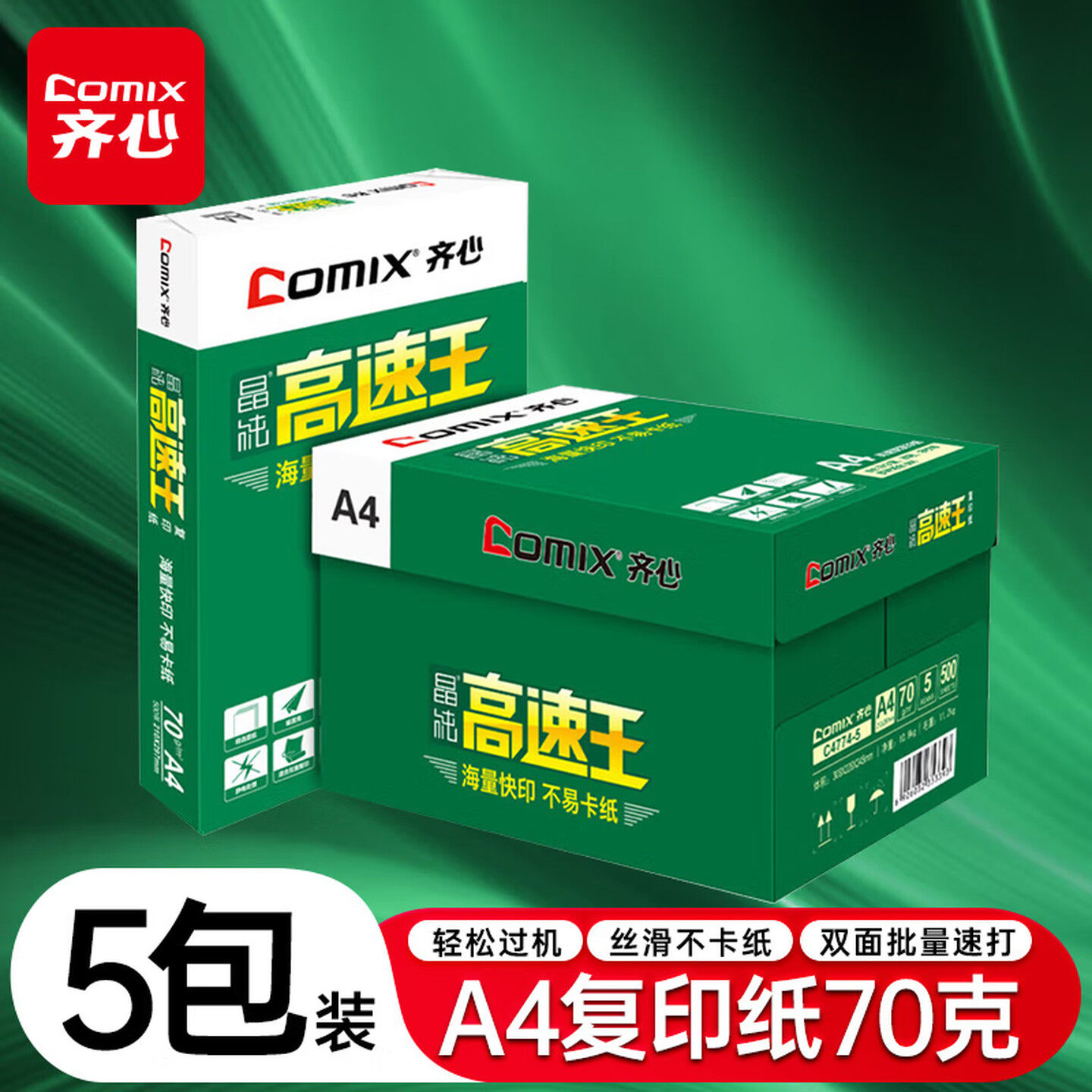 📚 齐心高速王A4纸打印复印纸a4 70g80克500页白纸 办公草稿纸整箱