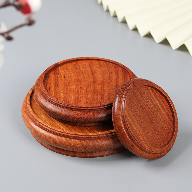 📚 大果紫檀圆形加厚底座红木置物架花梨实木底托文玩玉石架多肉托盘