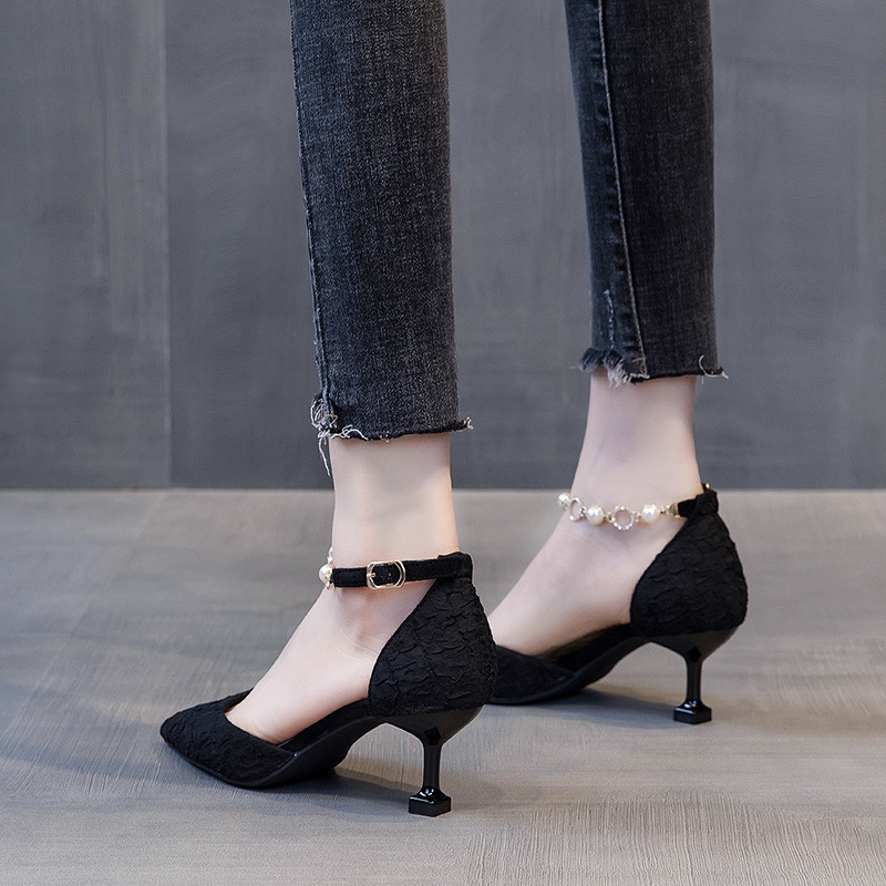 📚 包头凉鞋女夏季外穿高跟鞋2025新款一字扣带细跟韩版百搭中空单鞋