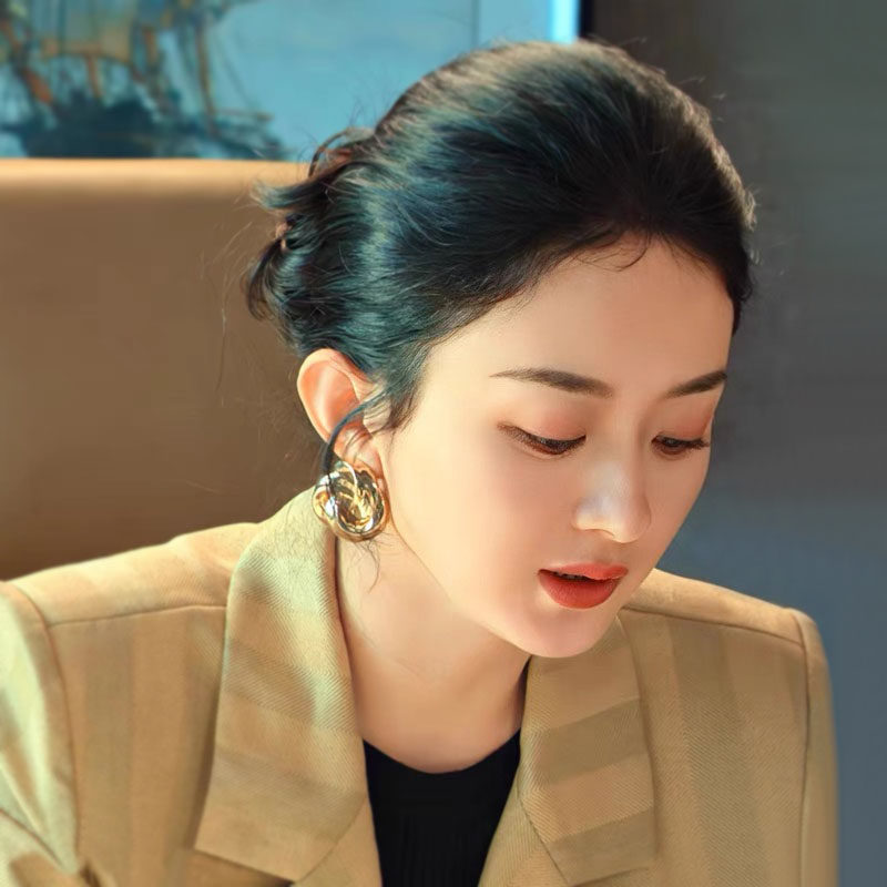 📚 风吹半夏赵丽颖同款耳环轻奢高级感金色夸张耳钉女2025年新款潮