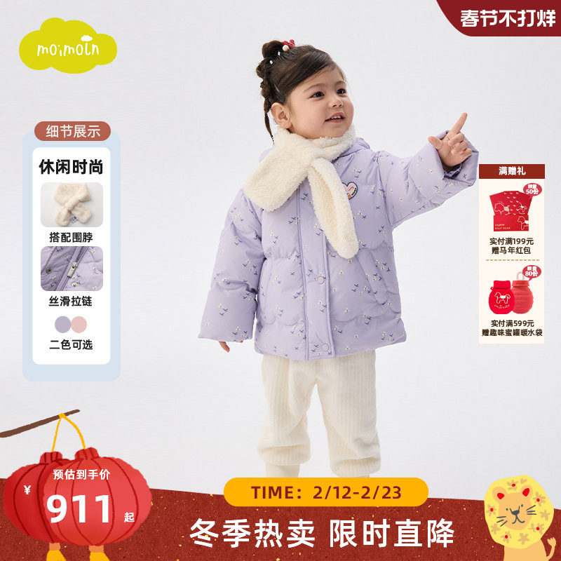 📚 moimoln小云朵童装25冬季新款女童羽绒服女宝宝冬装保暖外套围巾