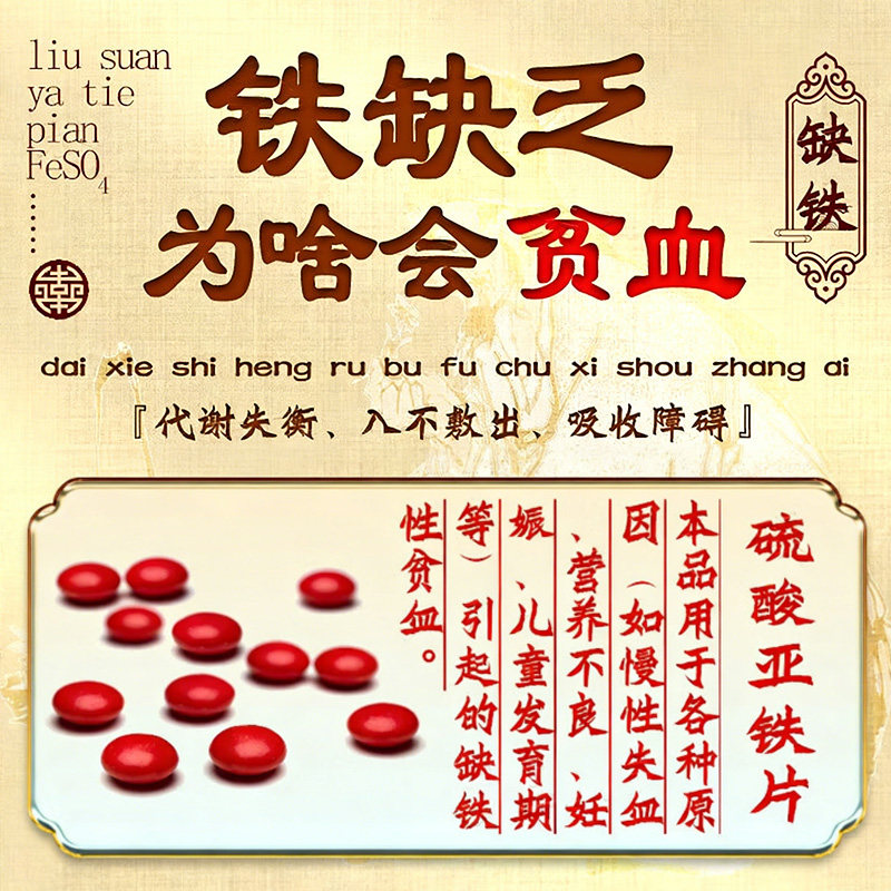 📚 缺铁性贫血补血补铁药补气血男性女性失血体虚补血专用硫酸亚铁片