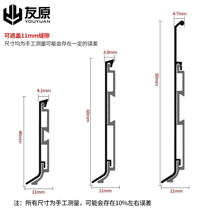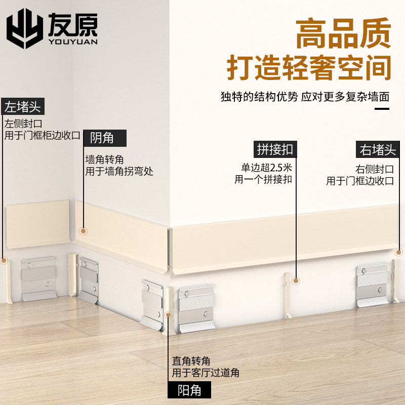 📚 奶油风铝合金踢脚线4公分菱花白杏子灰金属贴脚线6/8cm超薄地脚线
