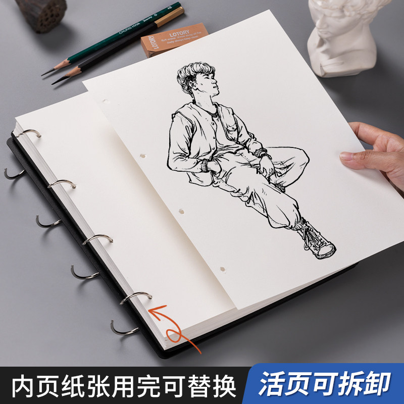 📚 素描本活页可拆卸画画本加厚160gA4美术生专用速写本儿童幼儿园绘图本彩铅马克笔油画本空白硬壳本记事本