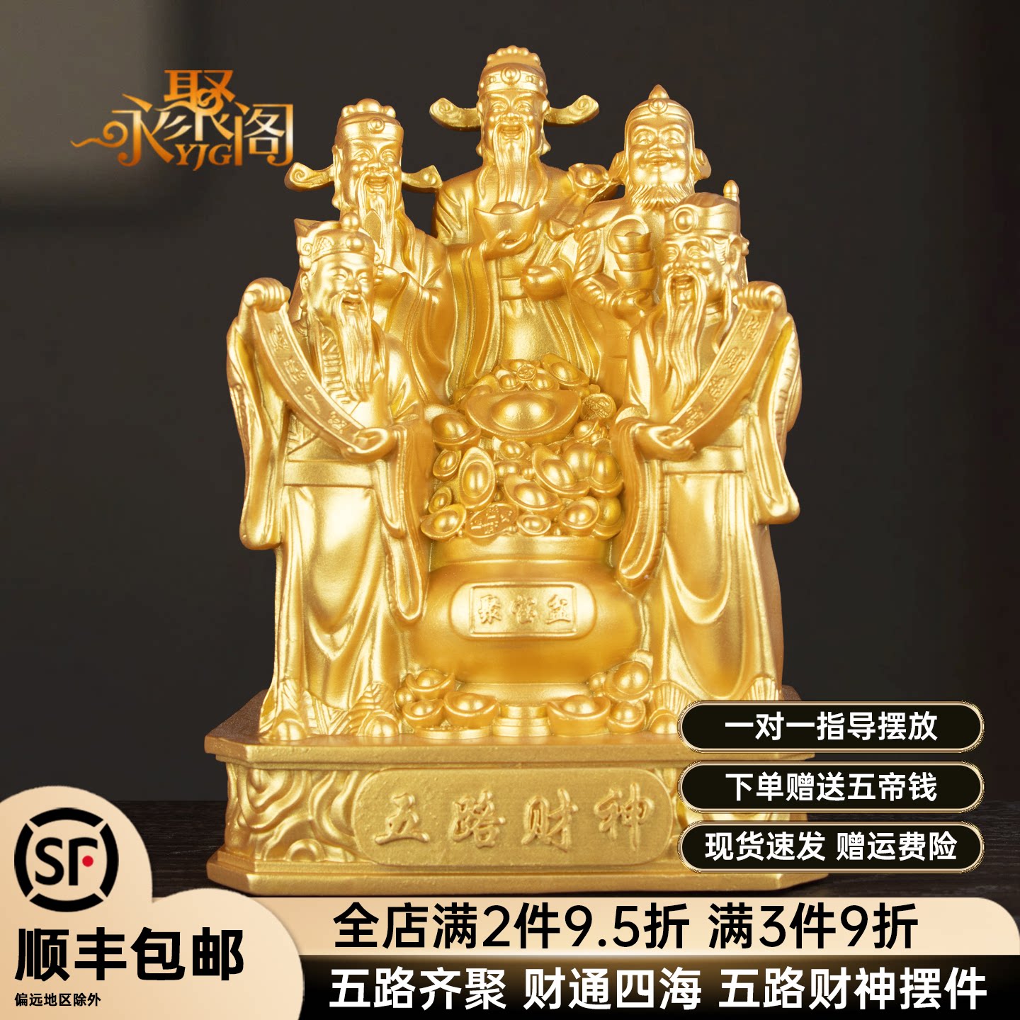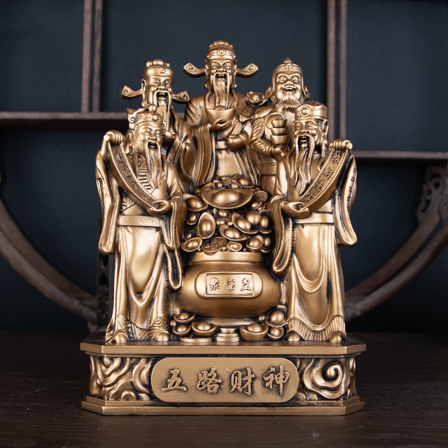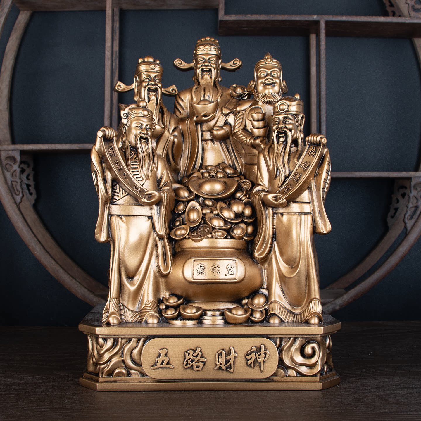 📚 五路财神爷聚宝盆招财供奉摆件商铺客厅家用旺宅生意财运摆件