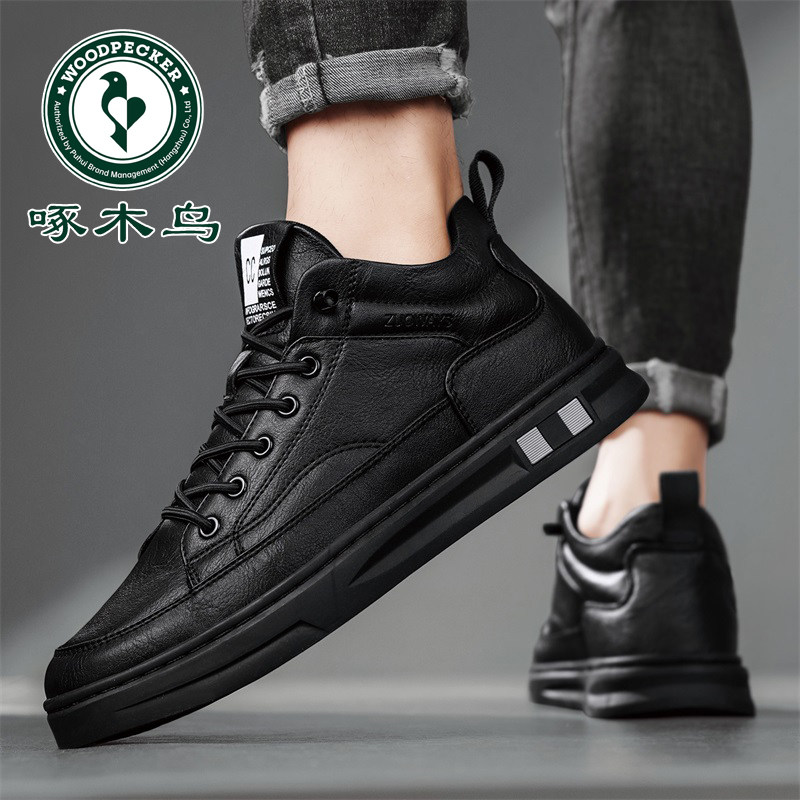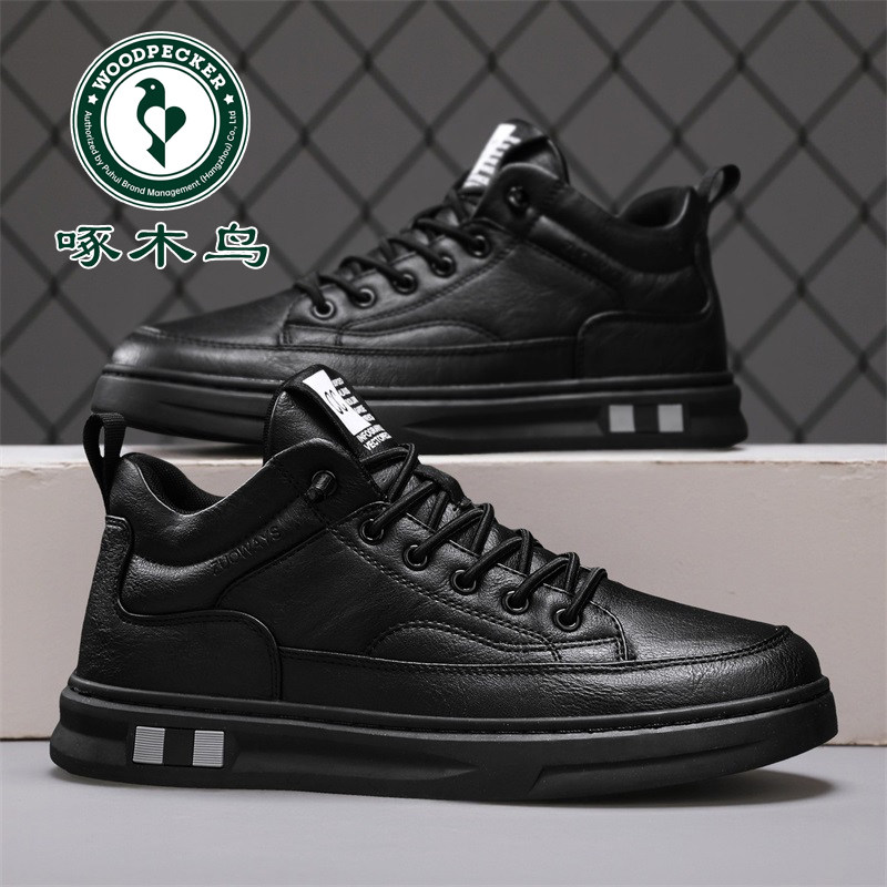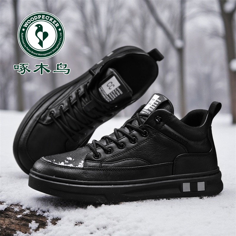 📚 啄木鸟男鞋新款秋冬季皮面休闲板鞋男软底防滑保暖百搭潮流小黑鞋