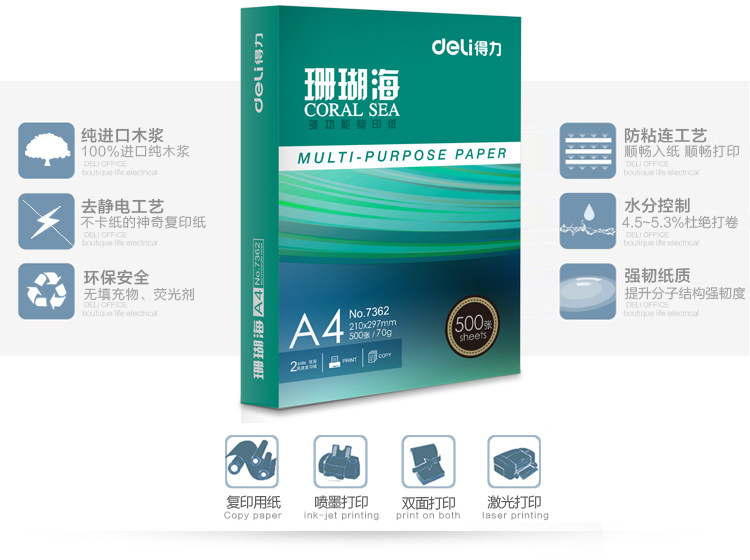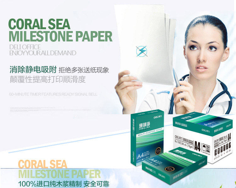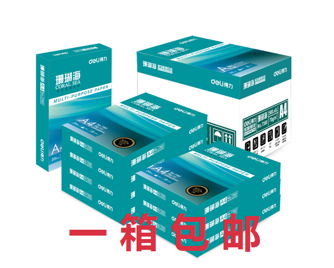 📚 得力珊瑚海a4打印70克 80克500张5包8包a4打印白纸白令海用品包邮