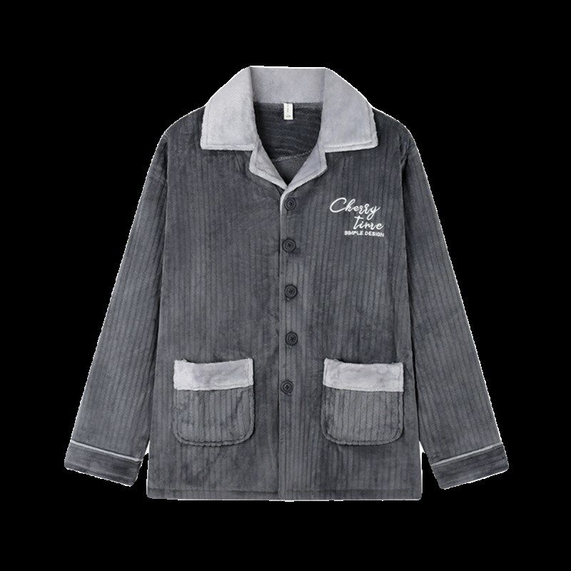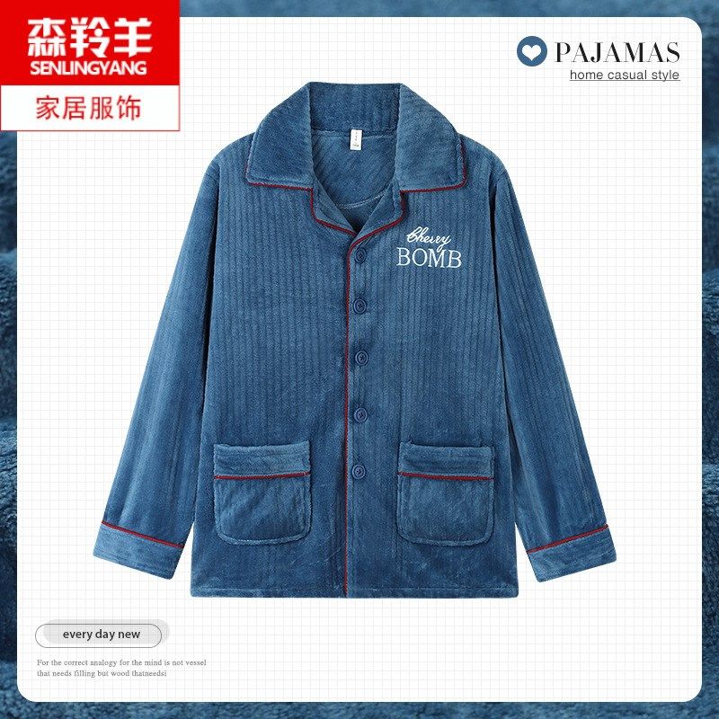 📚 男士睡衣上衣单件冬季加绒加厚男款珊瑚绒长袖保暖法兰绒外套服装