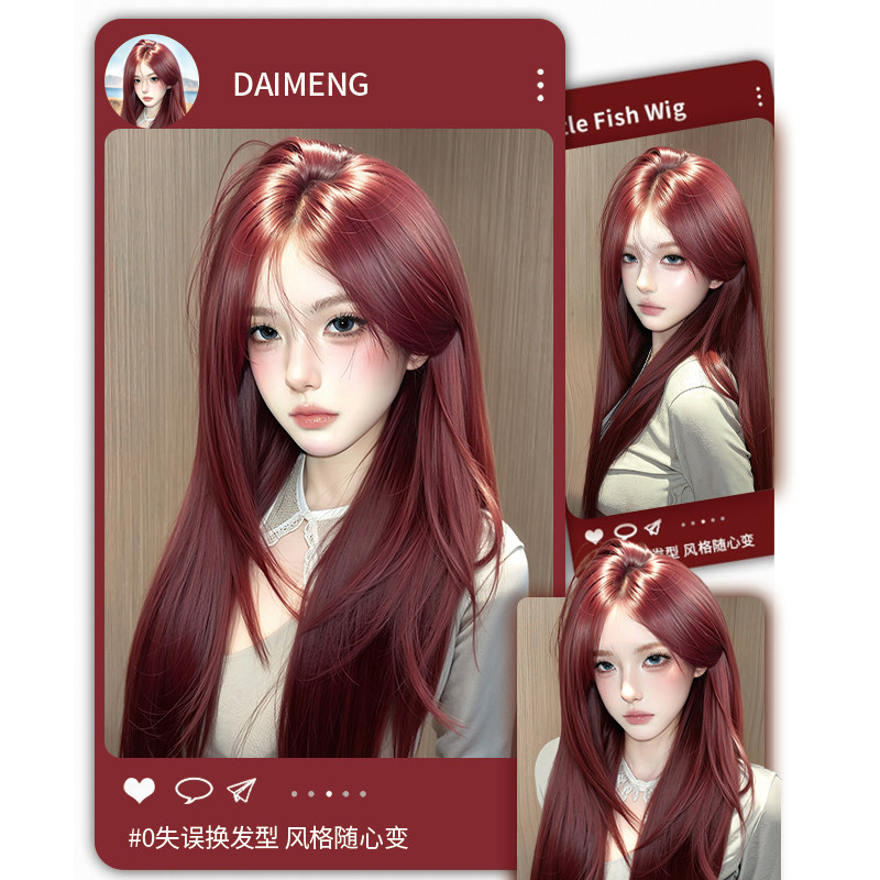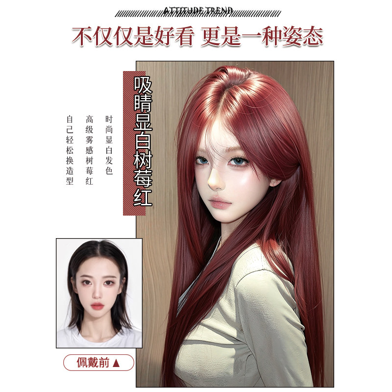 📚 假发全头套女夏季树莓红色长直发显白吸睛甜酷自然仿真头皮假发套