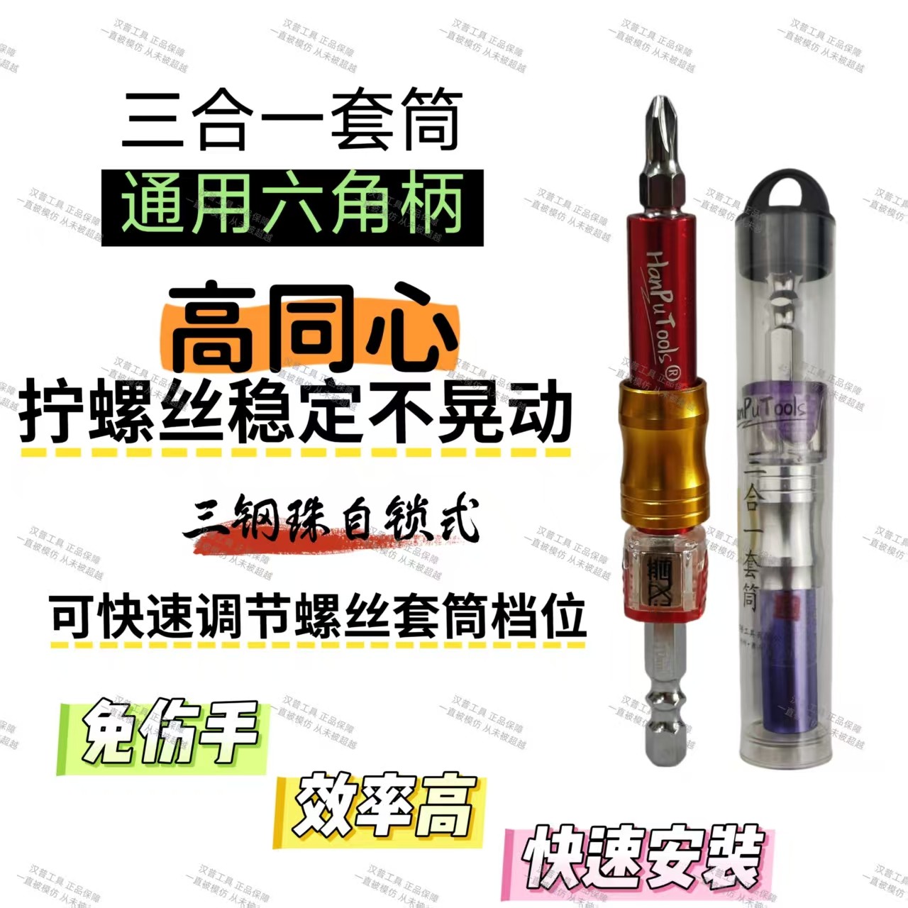 📚 HanPu汉普三合一自锁式套筒快速接杆套筒强磁批头家具定制安装批