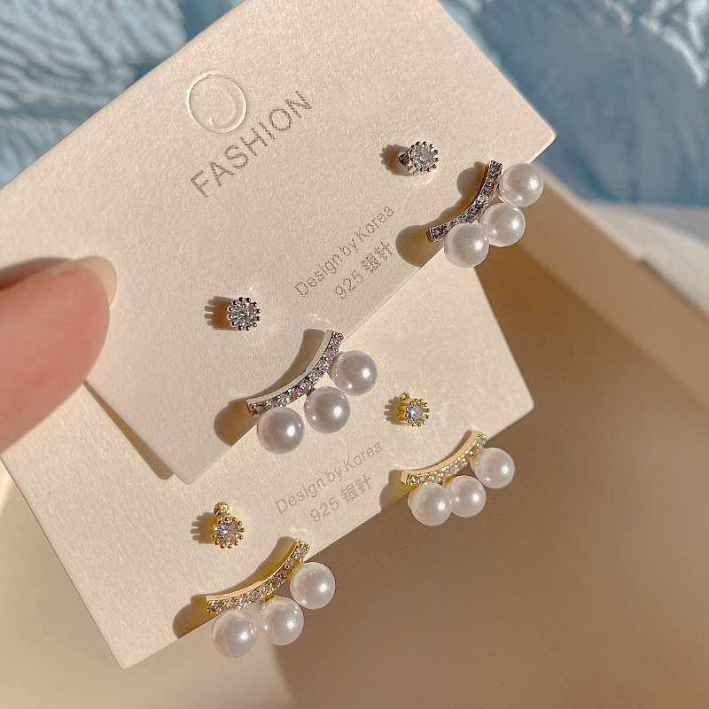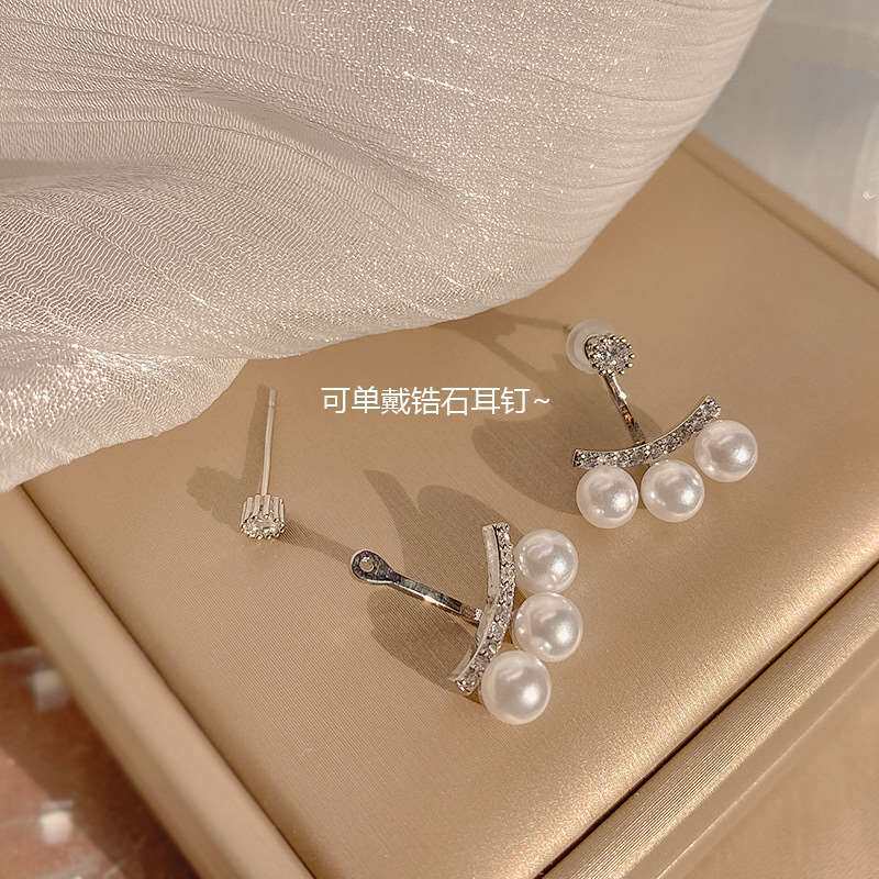 📚 Simple pearl earrings women's two wearing temperament person