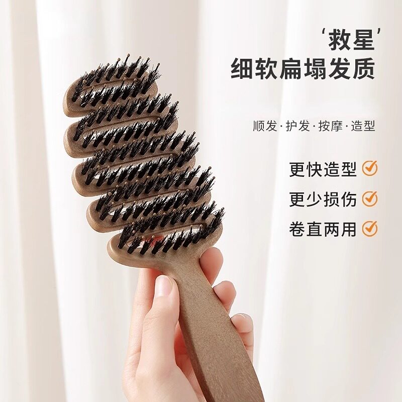 📚 松塔猪鬃护发梳发顶蓬松神器按摩头部顺发排骨梳网红梳子女士专用