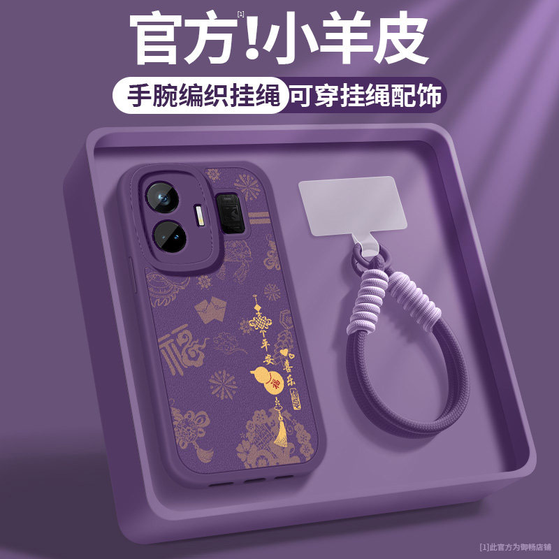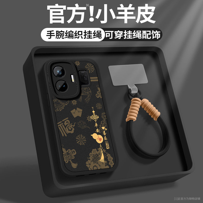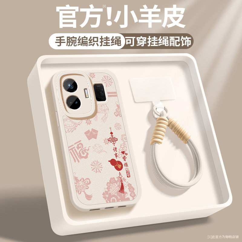 📚 适用真我GTneo6手机壳neo6se新款女士GTneo5se红色顺遂带挂绳realmeGTneo3小羊皮OPPOneo5新年保护套硅胶软壳