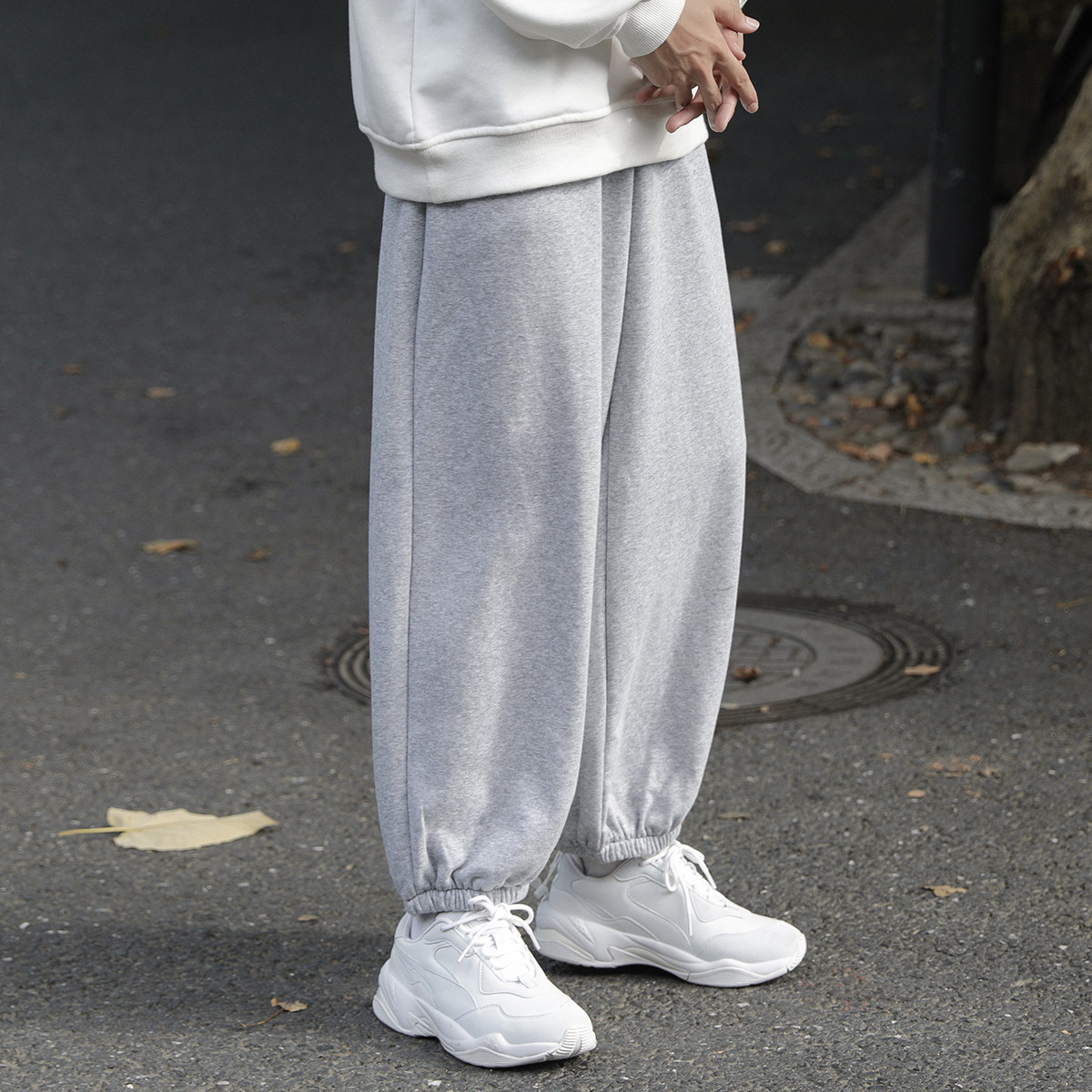 📚 加绒厚弹力运动卫裤男加肥加大码潮牌胖子休闲长裤超宽松春秋小脚