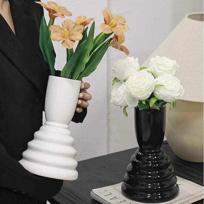 📚 大口径flower vase法式复古花瓶ins风大号艺术感花瓶陶瓷高级感