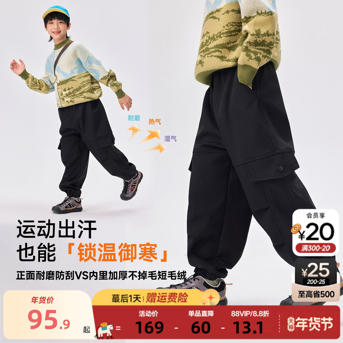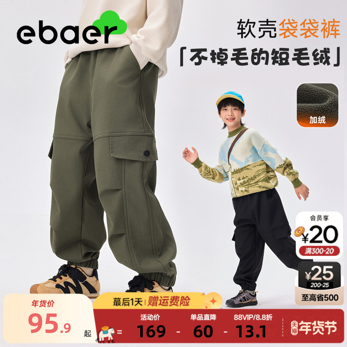 📚 ebaer儿童加绒工装裤2025冬装男童加厚保暖裤子女童软壳休闲长裤