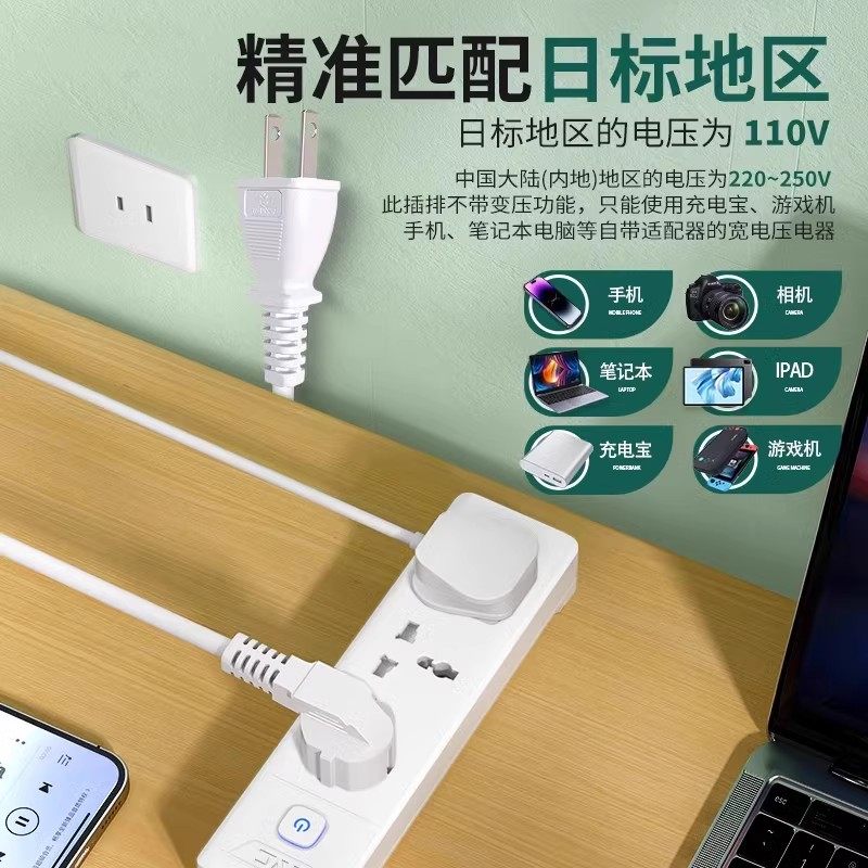 📚 日本转国内转换插头旅行插座日标转换器两孔转三孔充电电源插排