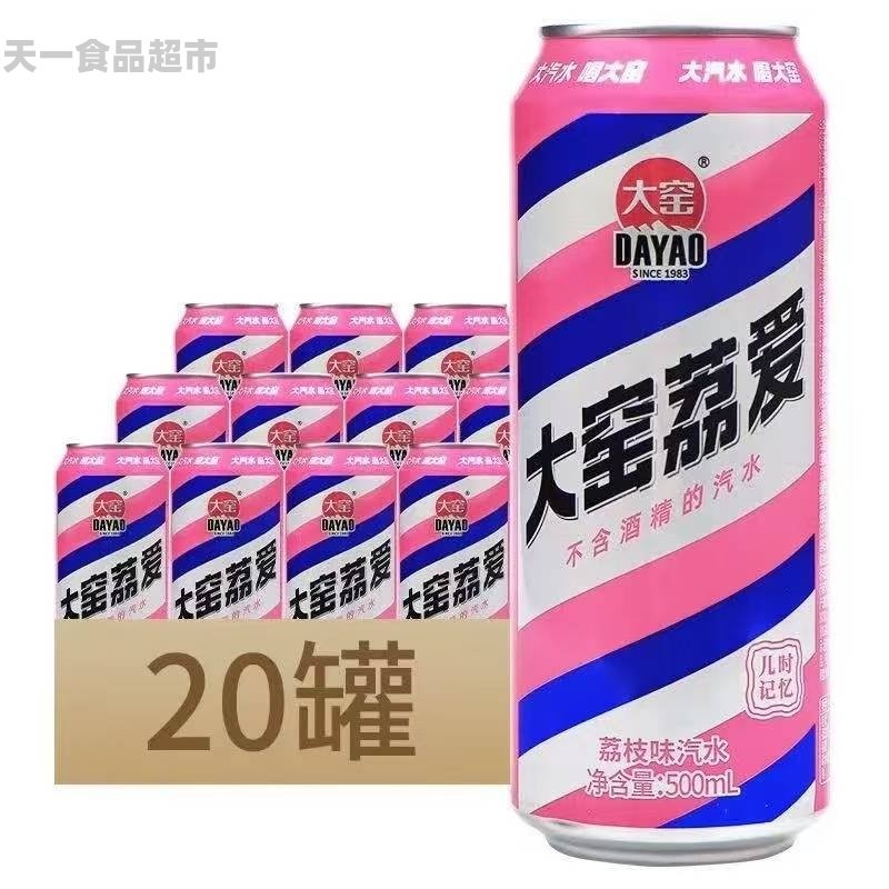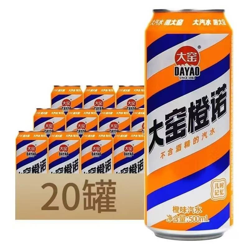 📚 大窑果味汽水500ml20罐嘉宾橙诺荔枝味碳酸饮料气泡水批发整箱
