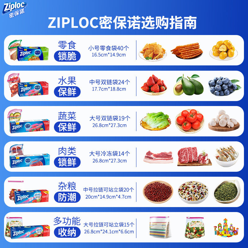 📚 Ziploc密保诺保鲜袋密封袋拉链式冰箱收纳袋可站立食品级家用进口