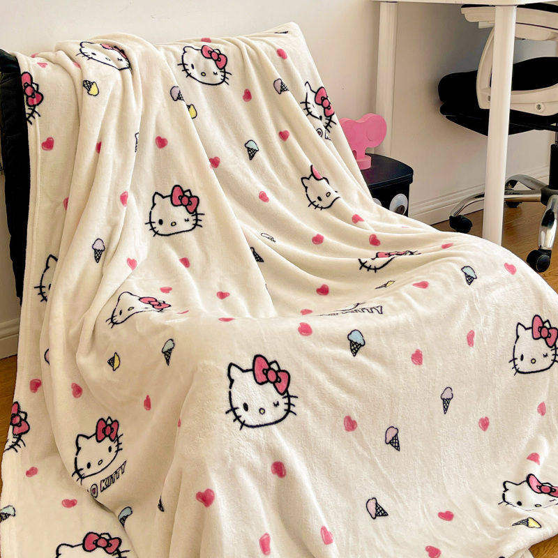 📚 helloKitty冬季法兰绒毛毯卡通KT猫毯子儿童多功能保暖盖毯