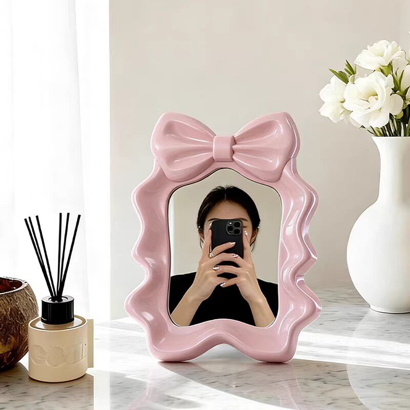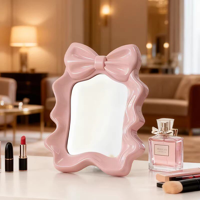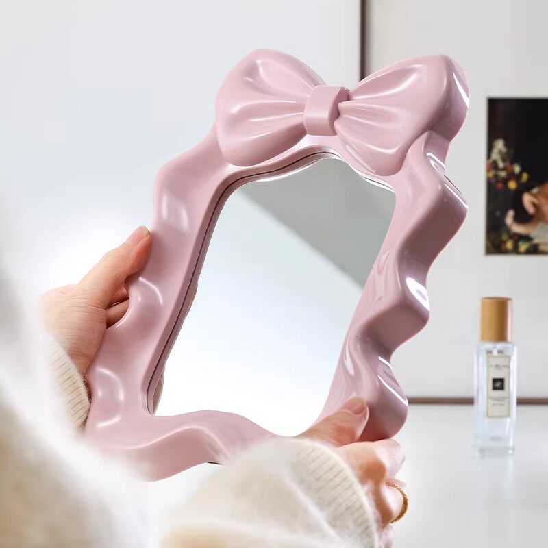 📚 梳妆镜可爱蝴蝶结造型便携化妆镜随身美妆镜桌面台式补妆镜随身镜