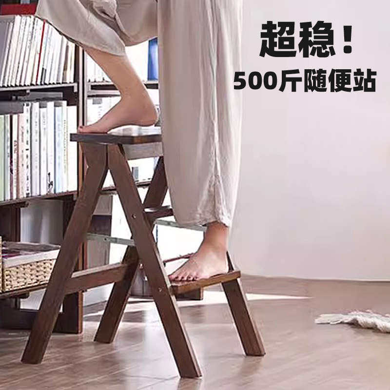 📚 爱必居实木可折叠梯凳厨房凳子家用人字梯台阶两用登高步梯子超稳