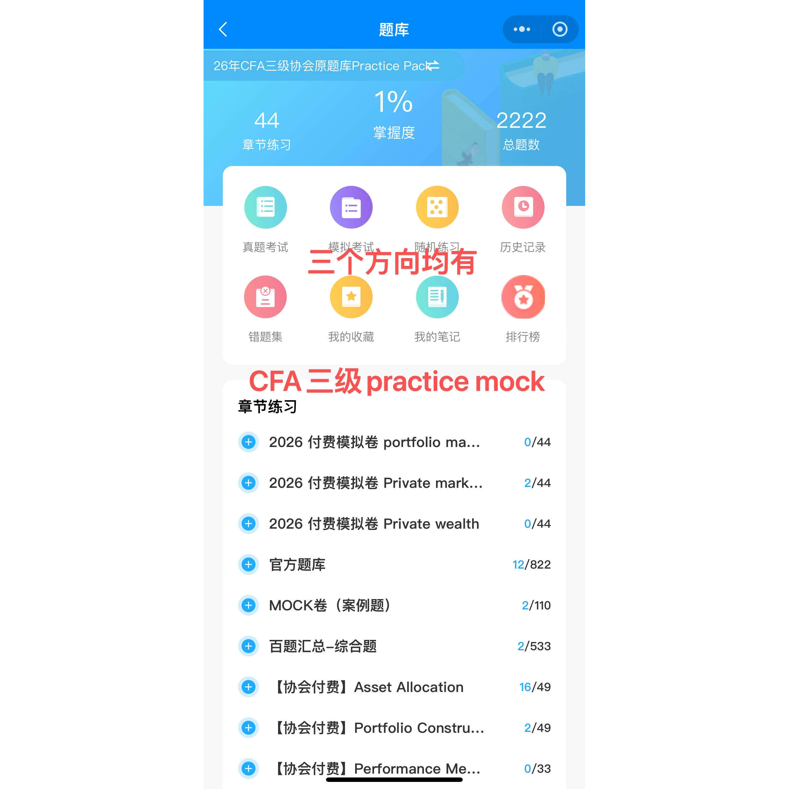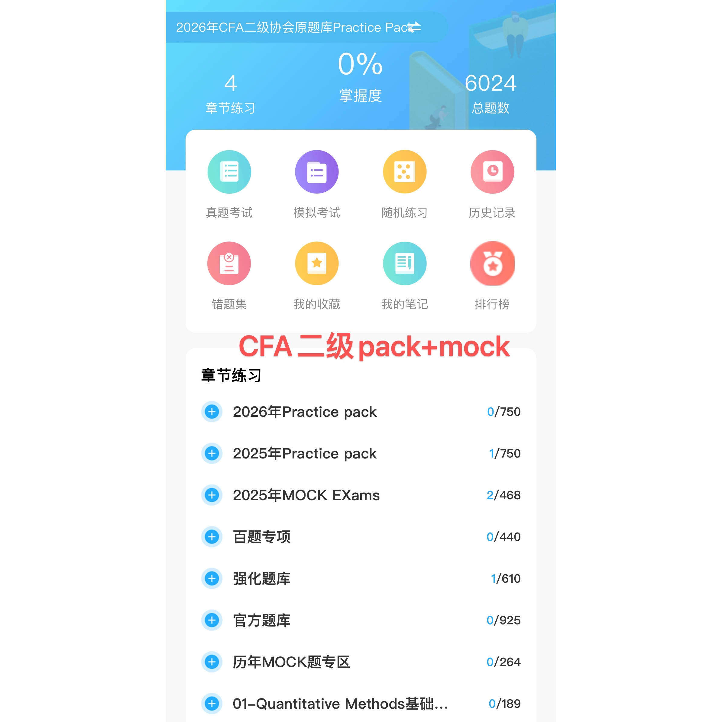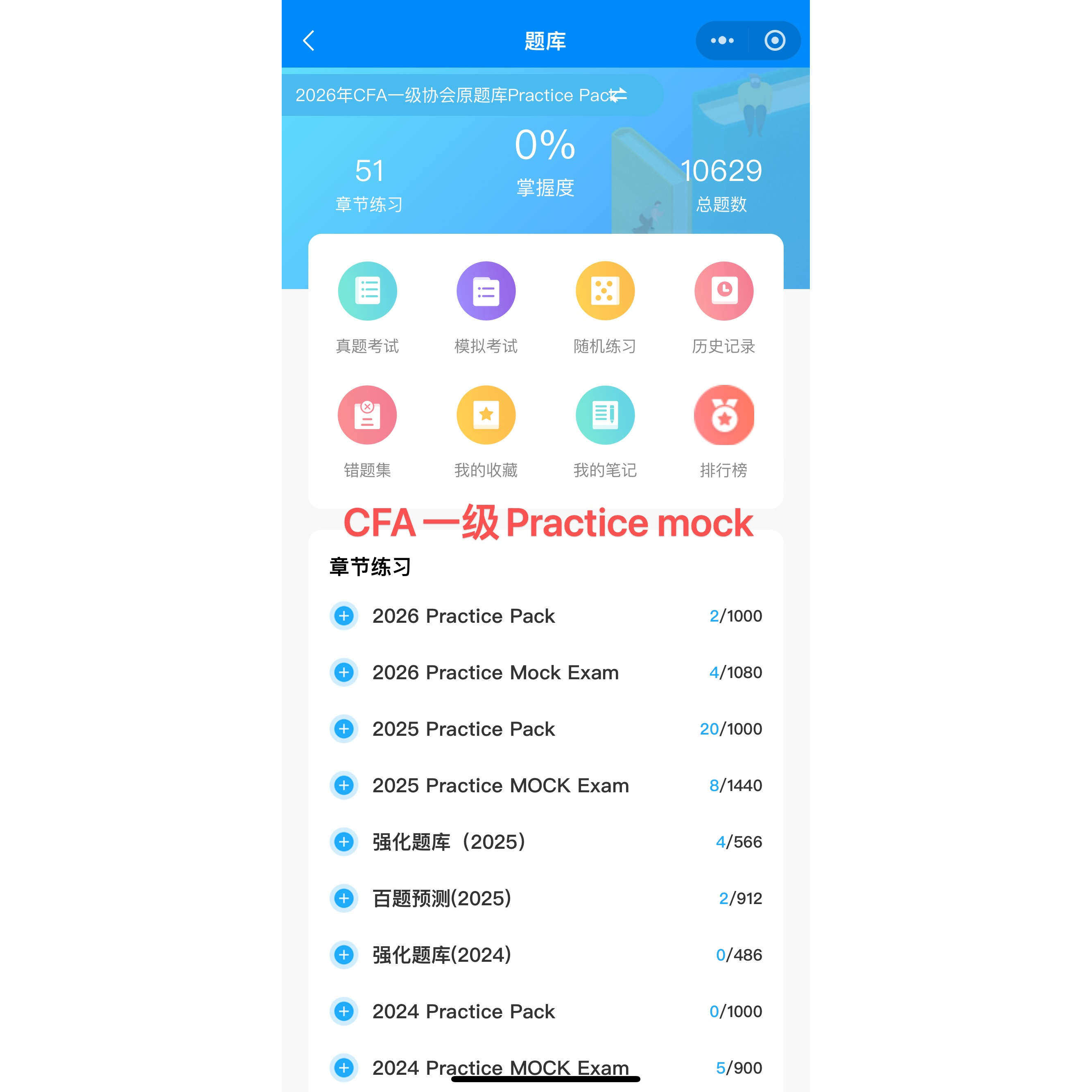 📚 2026CFA practice pack一级二级三级题库FRM一级二级协会题库押题