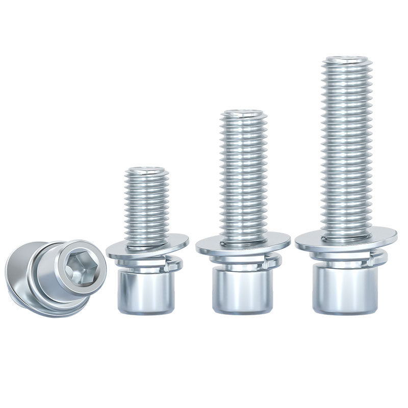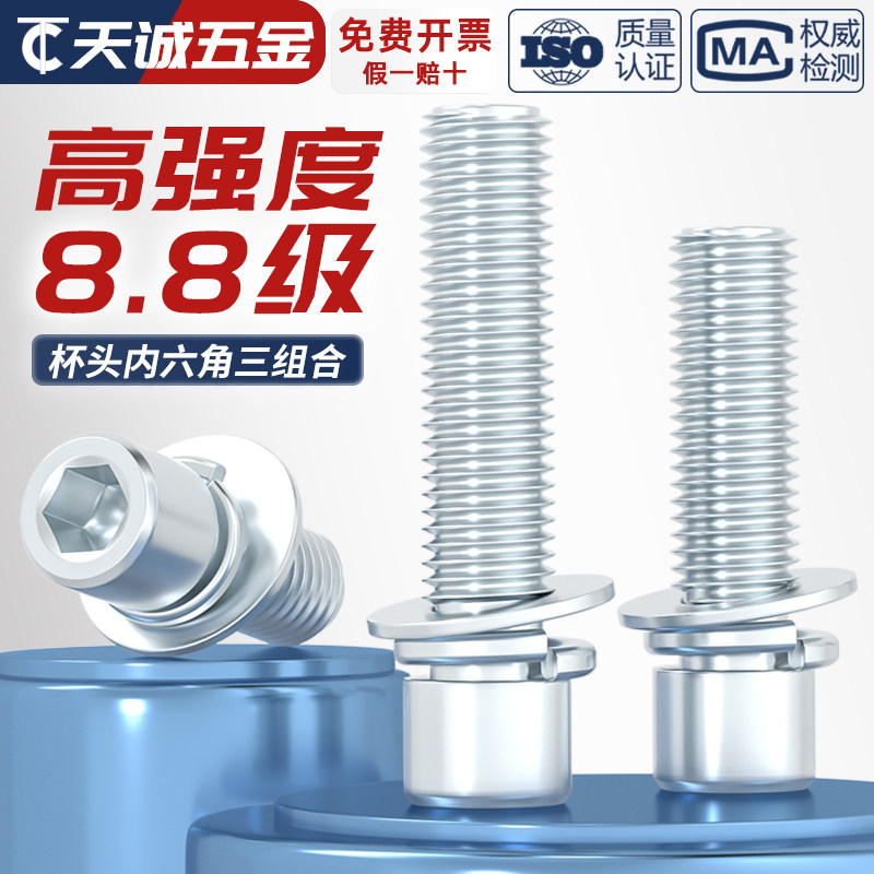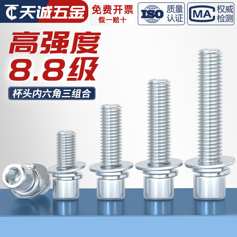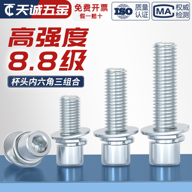📚 8.8级镀锌 内六角三组合螺丝钉 圆柱头带平垫弹垫片组合螺栓大全