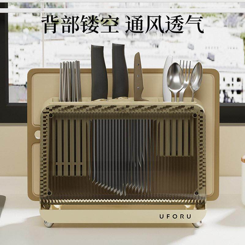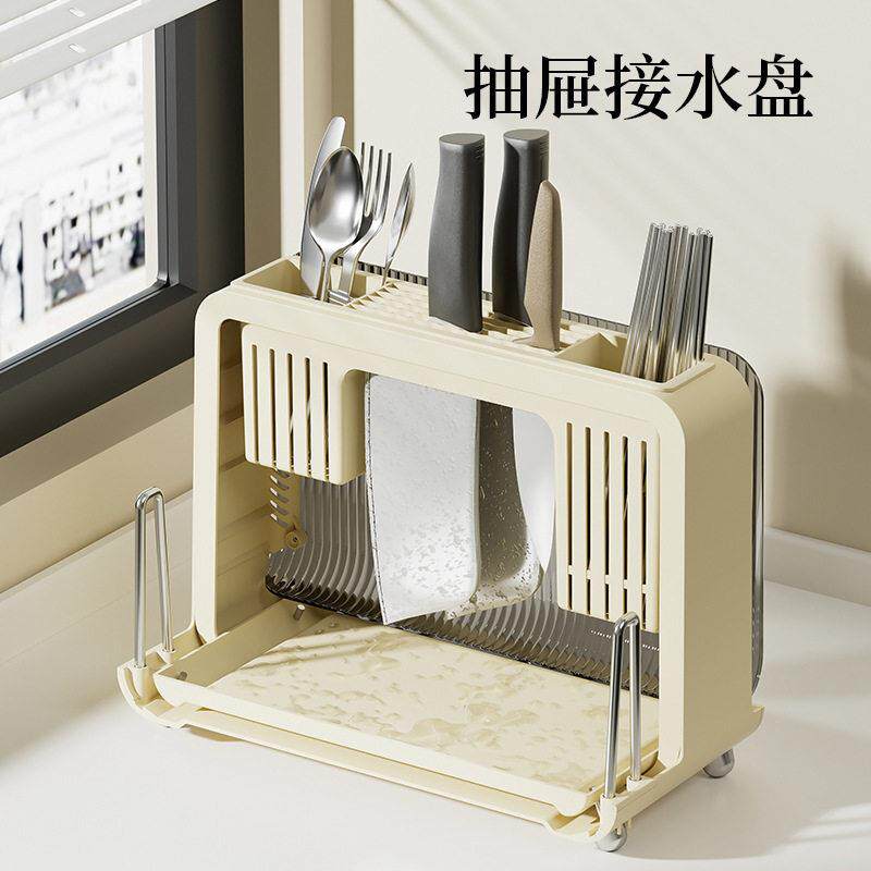 📚 刀架置物架多功能筷子勺子刀具案板架一体厨房台面菜板收纳沥水架