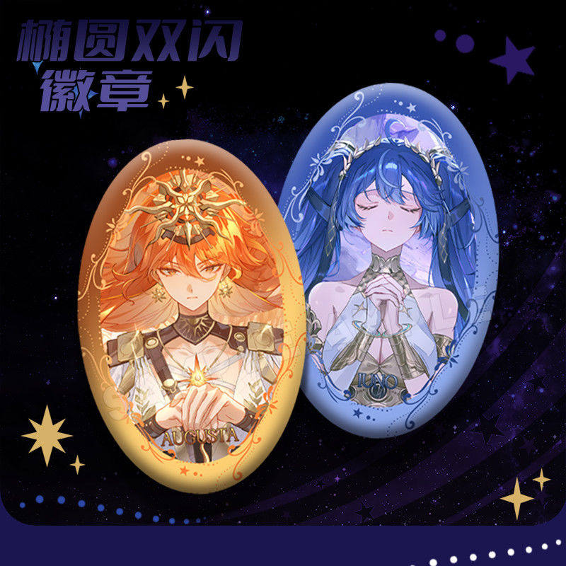 📚 鸣潮新款日以灼锋月以流明奥古斯塔尤诺周边椭圆双闪徽章