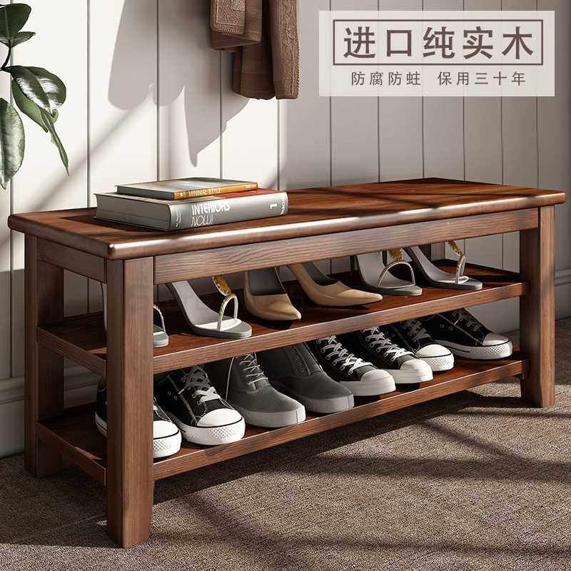 📚 Nordic solid wood shoe changing stool shoe cabinet sitting